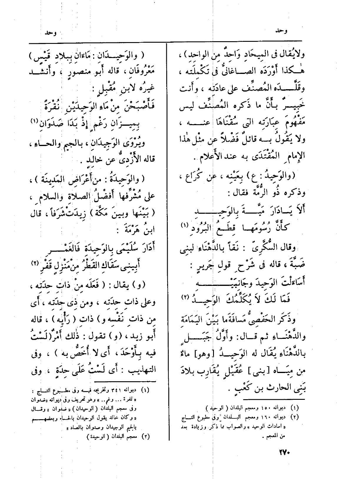 ( {والوَحِيدَانِ: مَاءَانِ بِبلادِ قَيْسٍ) مَعْرُوفَانِ، قَالَه أَبو منصورٍ، وأَنشد غيرُه لابنِ مُقْبِلٍ: