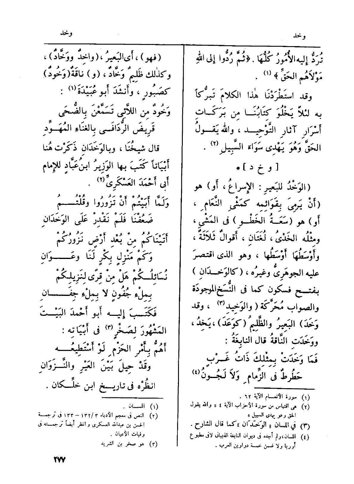 قَالَ شيخُنَا، {وبالوَخَدَانِ ذَكَرْت هُنا أَبْيَاتاً كَتَبَ بهَا الوَزِيرُ ابنُ عَبَّادٍ للإِمام أَبي أَحْمَدَ العَسْكَرِيِّ.