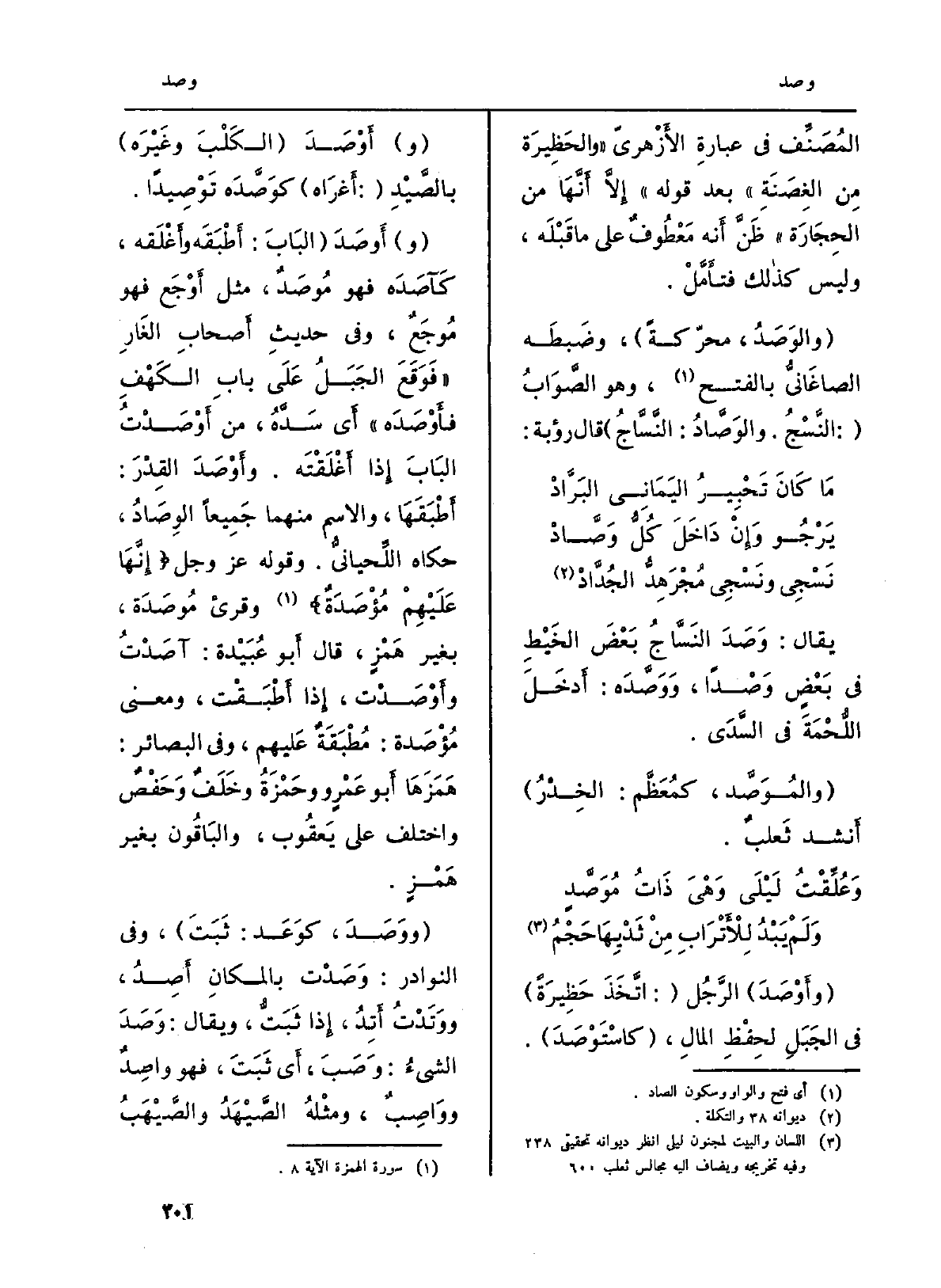 (و) أَوصَدَ (البَابَ:) أَطْبَقَه وأَغْلَقَه، {كَآصَدَه فَهُوَ} مُوصَدٌ، مثل أَوْجَع فَهُوَ مُوجَعٌ، وَفِي حديثِ أَصحابه الغَارِ (فَوَقَعَ الجَبَلُ عَلَى بابِ الكَهْفِ {فأَوْصَدَه) أَي سَدَّهُ، من} أَوْصَدْتُ البَابَ إِذا أَغْلَقْتَه. {وأَوْصَدَ القِدْرَ: أَطْبَقَهَا، وَالِاسْم مِنْهُمَا جَمِيعاً} الوِصَادُ، حَكَاهُ اللِّحيانيُّ. وَقَوله عز وَجل: {إِنَّهَا عَلَيْهِم {مُّؤْصَدَةٌ} (سُورَة الْهمزَة، الْآيَة: 8) وقرىء} مُوصَدَة، بِغَيْر هَمْزٍ، قَالَ أَبو عُبَيْدة: {آصَدْتُ} وأَوْصَدْت، إِذا أَطْبَقْت، وَمعنى {مُؤْصَدة: مُطْبَقَةٌ عَليهم، وَفِي البصائر: هَمَزَهَا أَبو عَمْرٍ ووحَمْزَةُ وخَلَفٌ وَحَفْصٌ وَاخْتلف على يَعقُوب، والبَاقُون بِغَيْر هَمْزٍ.