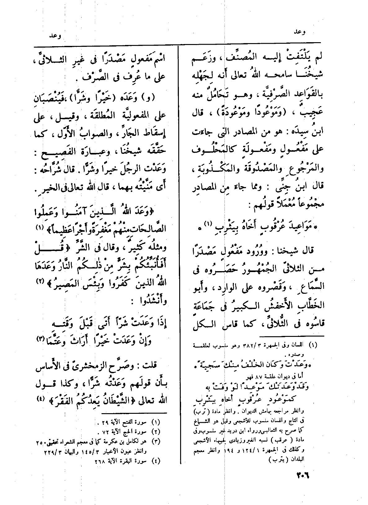 قلت: وصَرَّح الزمخشريّ فِي الأَساس بأَن قولَهم وَعَدْتُه شَرًّا، وَكَذَا قَول الله تَعَالَى: {الشَّيْطَانُ! يَعِدُكُمُ الْفَقْرَ} (سُورَة الْبَقَرَة، الْآيَة: 268)