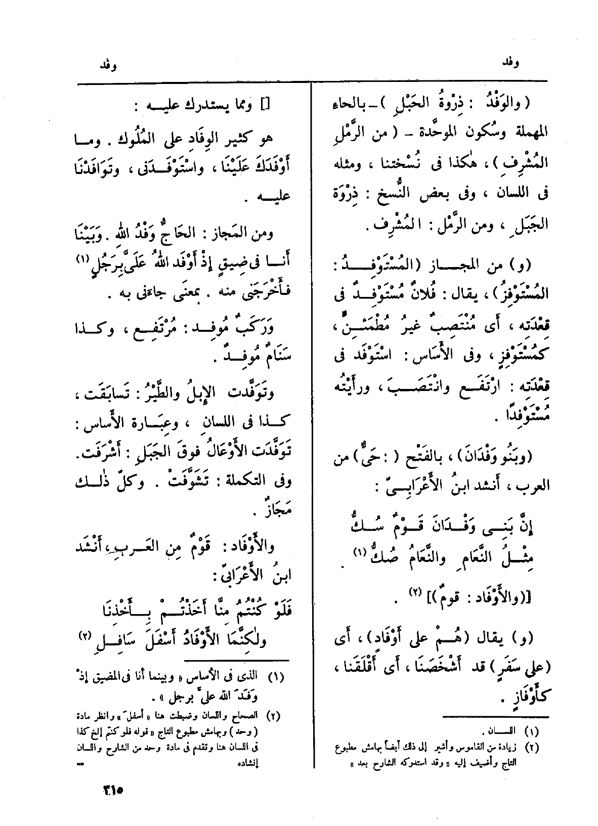 } والأَوْفَاد: قَوْمٌ مِن العَربِ، أَنْشَد ابنُ الأَعْرَابيّ: