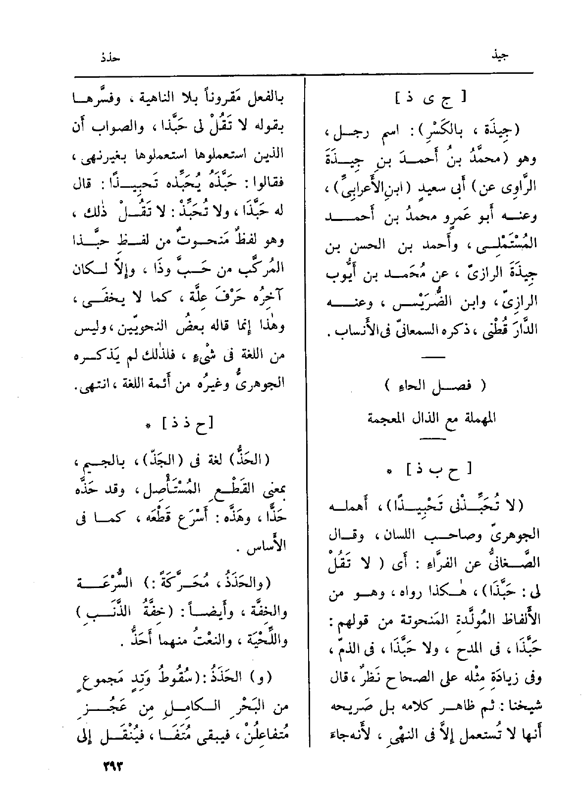 (فصل الحاءِ الْمُهْملَة مَعَ الذَّال الْمُعْجَمَة)