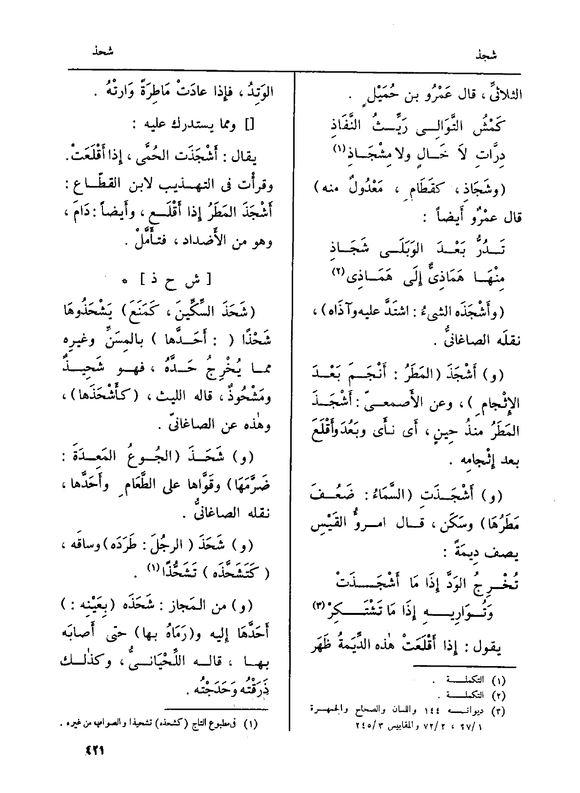 يُقَال: أَشْجَذَت الحُمَّى، إِذا أَقْلَعَتْ. وقرأْت فِي التَّهْذِيب لِابْنِ القطّاع: أَشْجَذَ المَطَرُ إِذا أَقْلَع، وأَيضاً: دَامَ، وَهُوَ من الأَضداد، فتأَمَّلْ.
