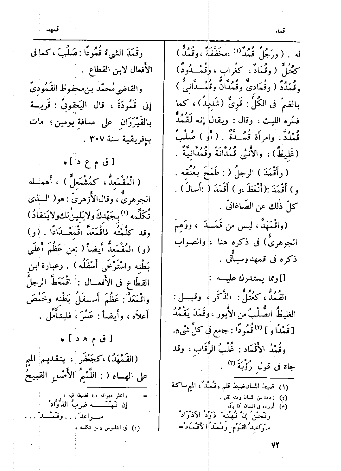 وقُمْدُ الأَقْمَاد: غُلْبُ الرِّقَابِ، وَقد جاءَ فِي قولِ رُؤْبَةَ.