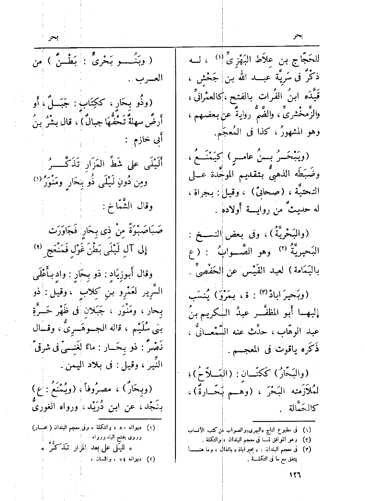 وَقَالَ أَبو زِيَادٍ: ذُو بِحَارٍ: وادٍ بأَعْلَى السَّرِير لعَمْرٍ وبنِ كِلابٍ، وَقيل: ذُو بِحار، ومَنْوَر، جَبَلانِ فِي ظَهْر حَرَّةِ بني سُلَيْم، قَالَه الجوهَرِيُّ، وَقَالَ نَصْرٌ: ذُو بِحَار: ماءٌ لغَنِيّ فِي شرقيّ النِّير، وَقيل: فِي بِلَاد الْيمن.