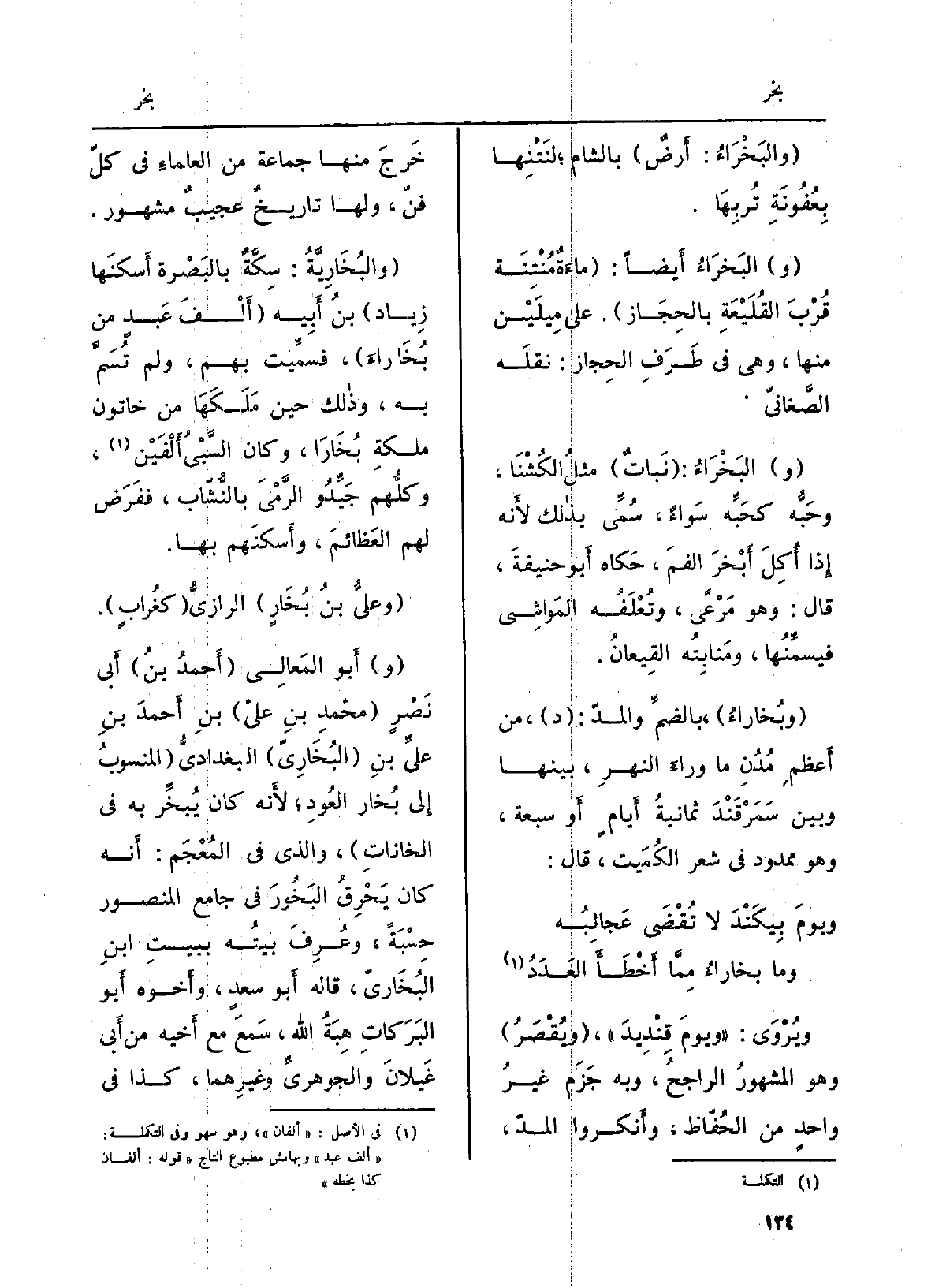 (وبُخاراءُ) ، بالضمِّ والمدّ: (د) ، من أَعظم مُدُنِ مَا وراءَ النهرِ، بَينهَا وَبَين سَمَرْقَنْدَ ثمانيةُ أَيامٍ أَو سَبْعَة، وَهُوَ مَمْدُود فِي شعر الكُمَيت، قَالَ: