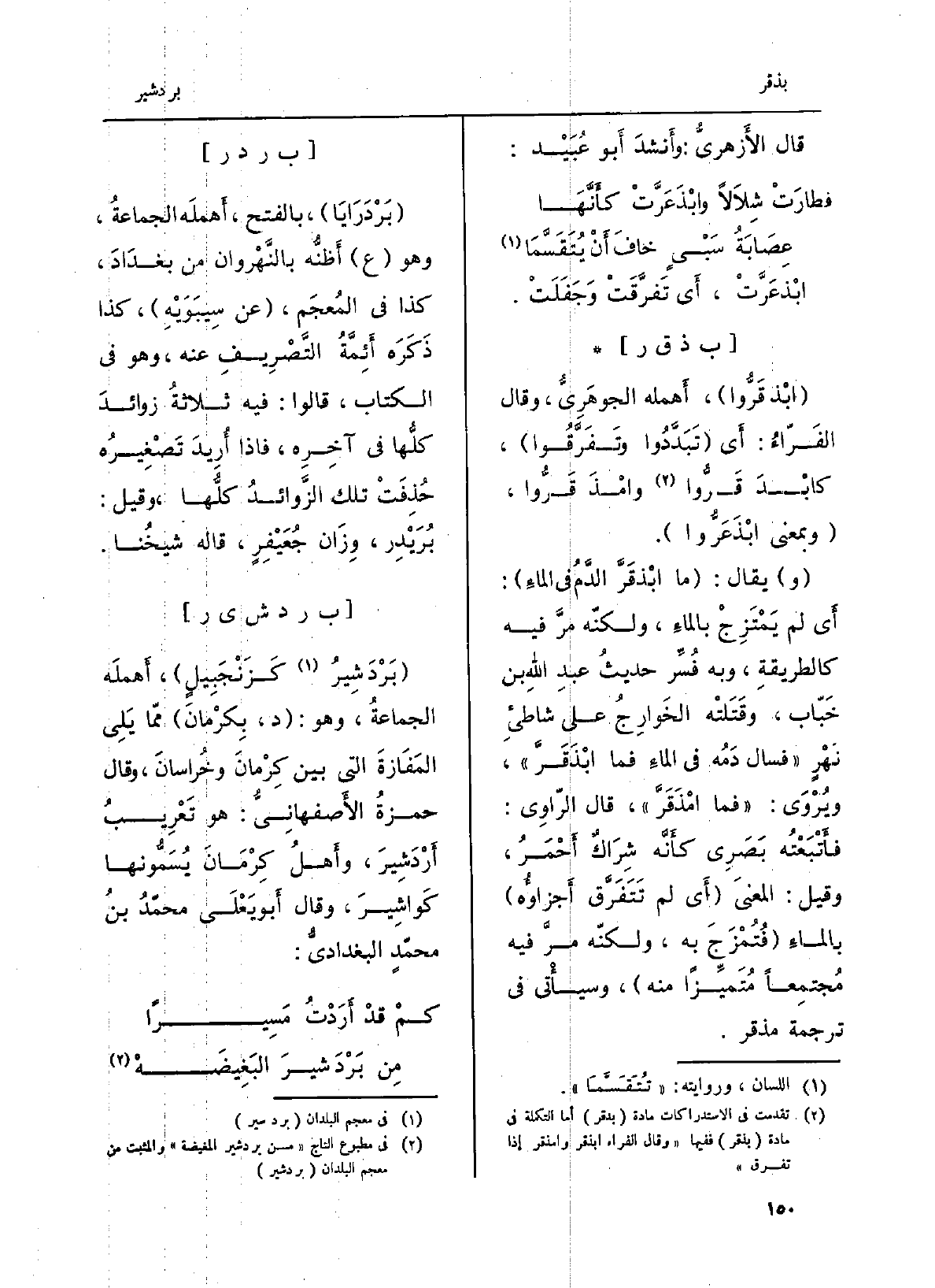 : (ابْذقَرُّوا) ، أَهمله الجوهَرِيُّ، وَقَالَ الفَرّاءُ: أَي (تَبَدَّدُوا وتَفَرَّقُوا) ، كابْدَقَرُّوا وامْذَقَرُّوا، (وَبِمَعْنى ابْذَعَرُّوا) .