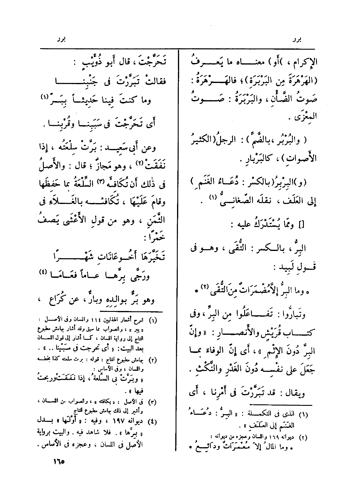 } البِرُّ، بِالْكَسْرِ: التُّقَى، وَهُوَ فِي قَولِ لَبِيد: