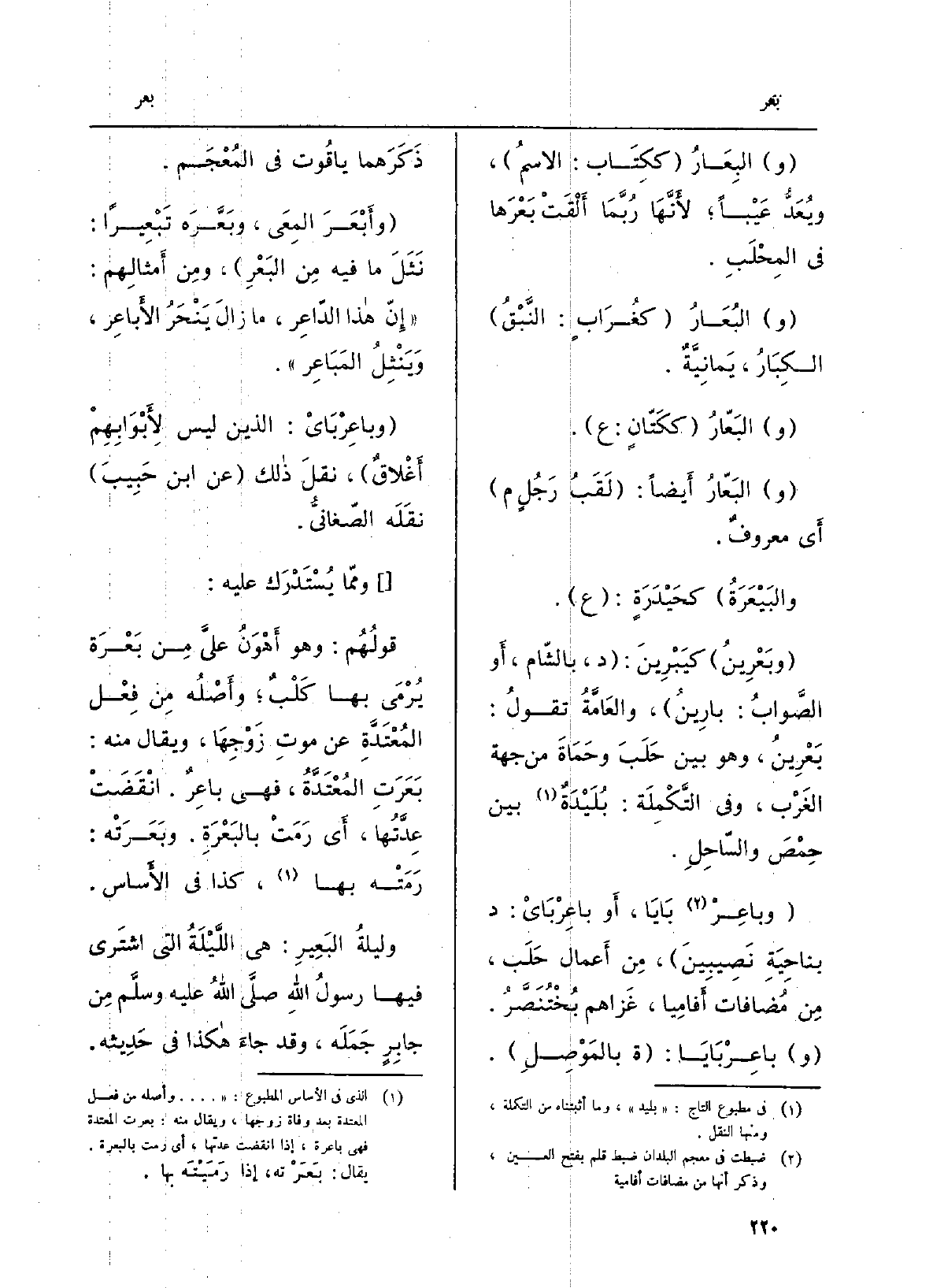 (و) البِعَارُ (ككِتَاب) الاسمُ) ، ويُعَدُّ عَيْباً؛ لأَنَّهَا رُبَّمَا أَلْقَتْ بَعْرَها فِي المِحْلَبِ (و) البُعَارُ (كغُرَابٍ: النَّبْقُ) الكِبَارُ، يَمانِيَّةٌ.