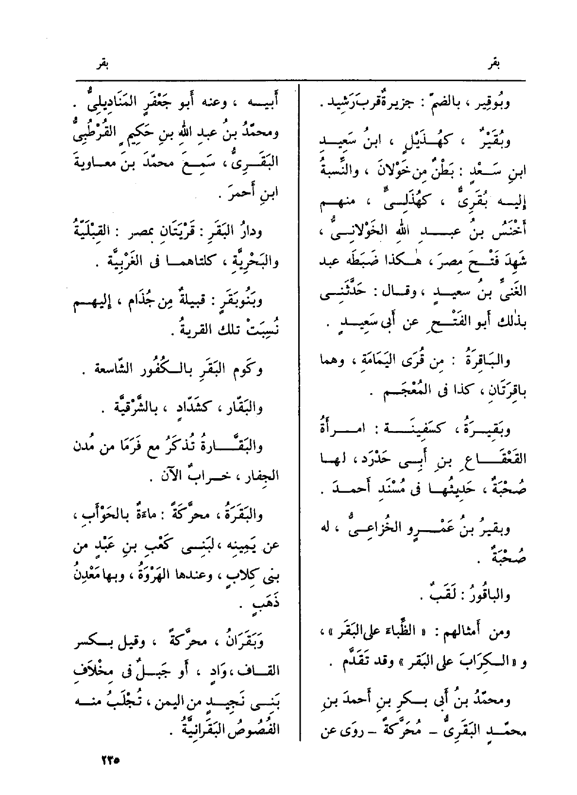 وبَنُو بَقَرٍ: مِن جُذَام، إِليهم نُسِبَتْ تِلْكَ القريةُ.