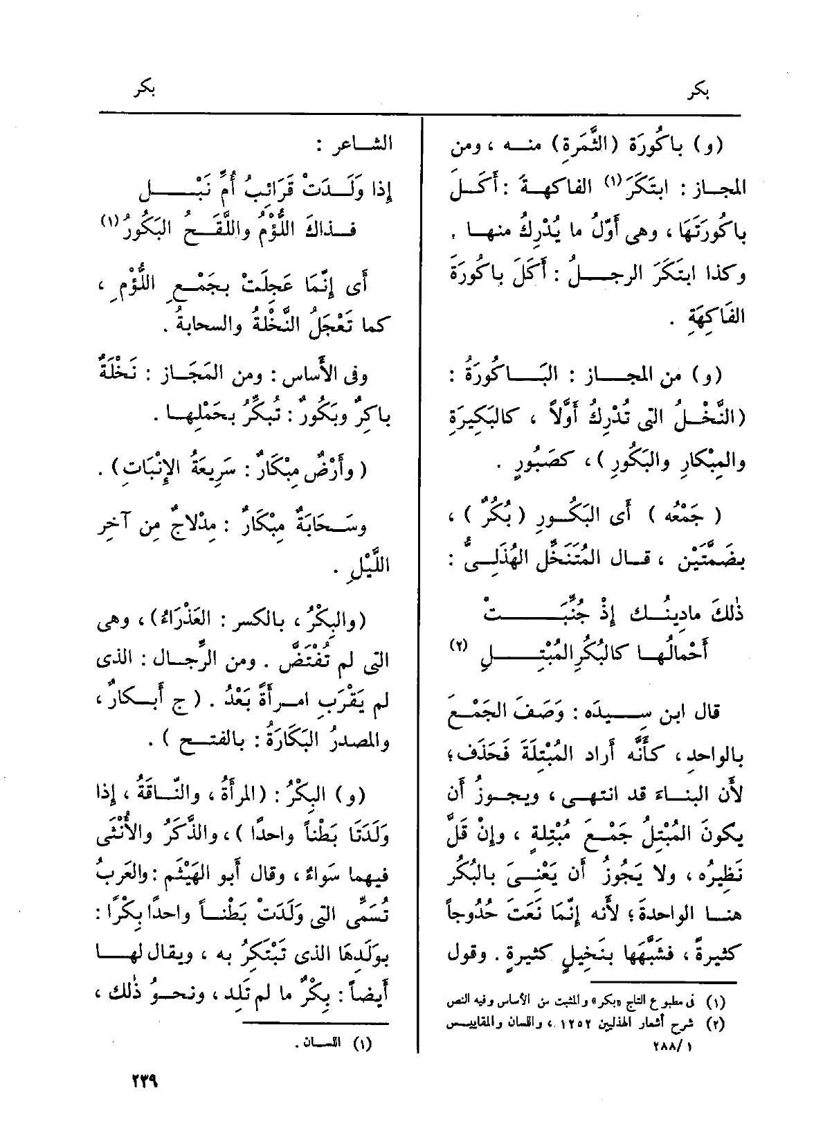 وَفِي الأَساس: وَمن المَجَاز: نَخْلَةٌ باكِرٌ وبَكُورٌ: تُبكِّرُ بحَمْلِها.