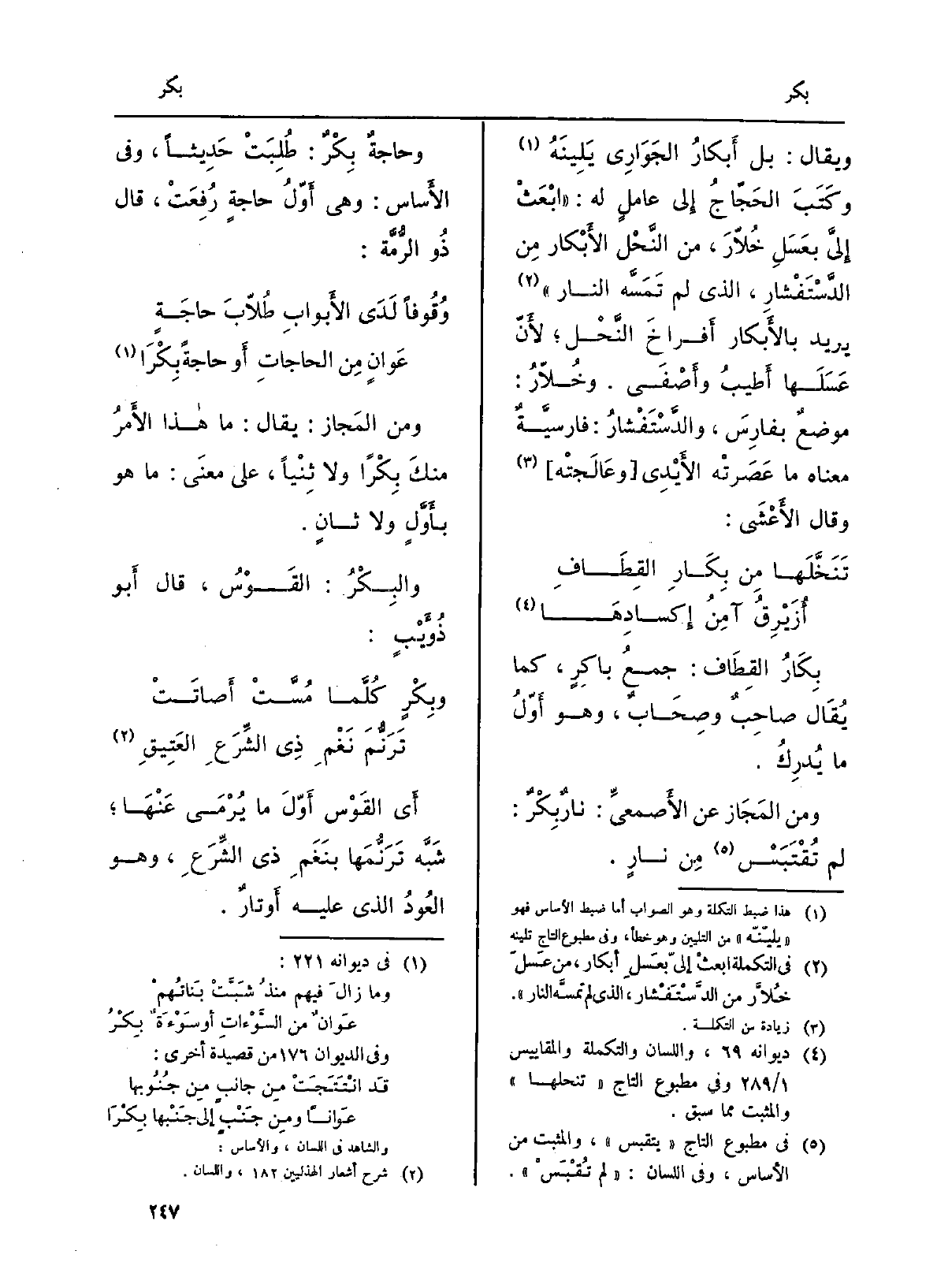 والبِكْرُ: القَوْسُ، قَالَ أَبو ذُؤَيْبٍ: