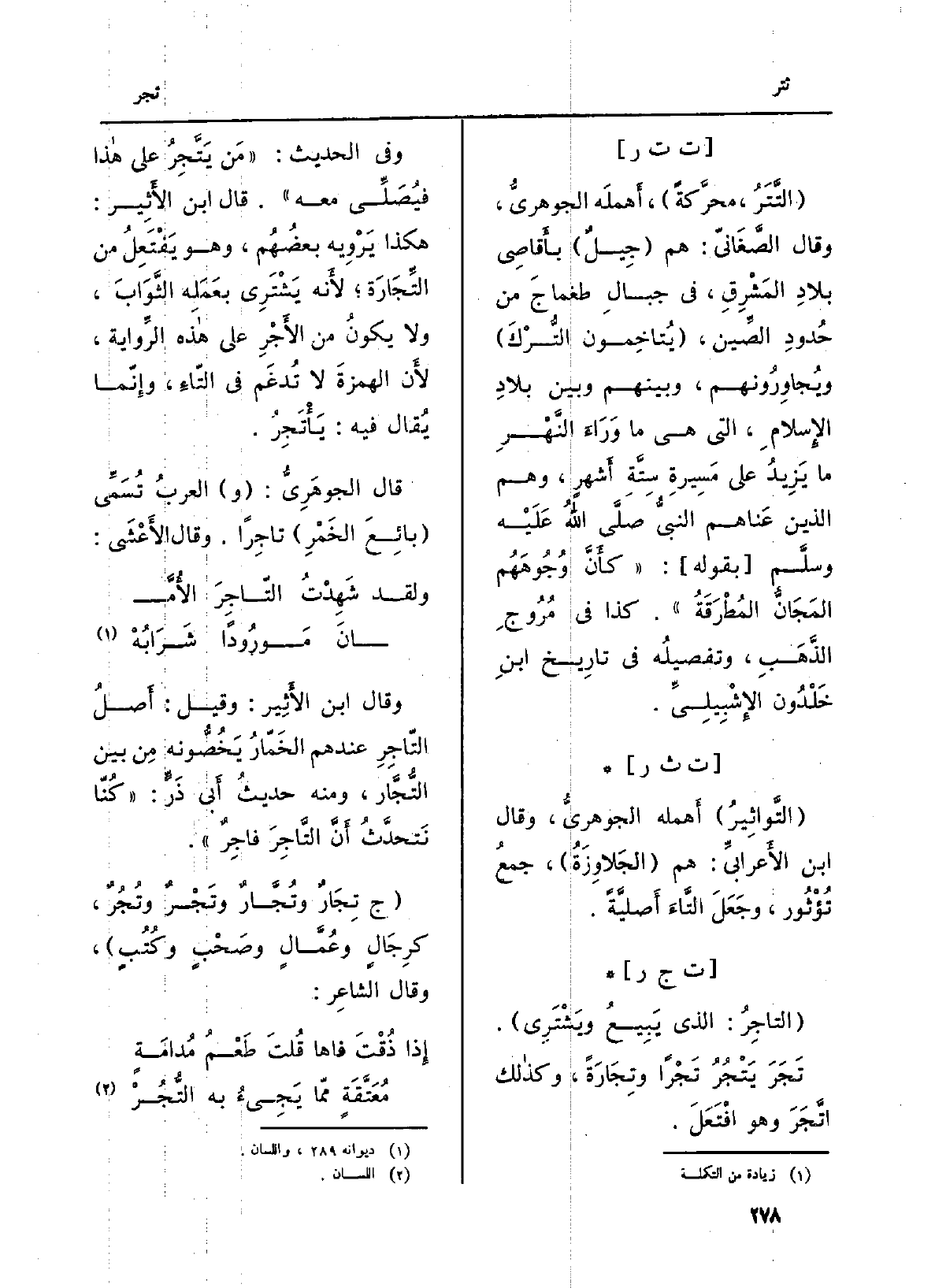 : (التاجِرُ: الَّذِي يَبِيعُ ويَشْتَرِي) .