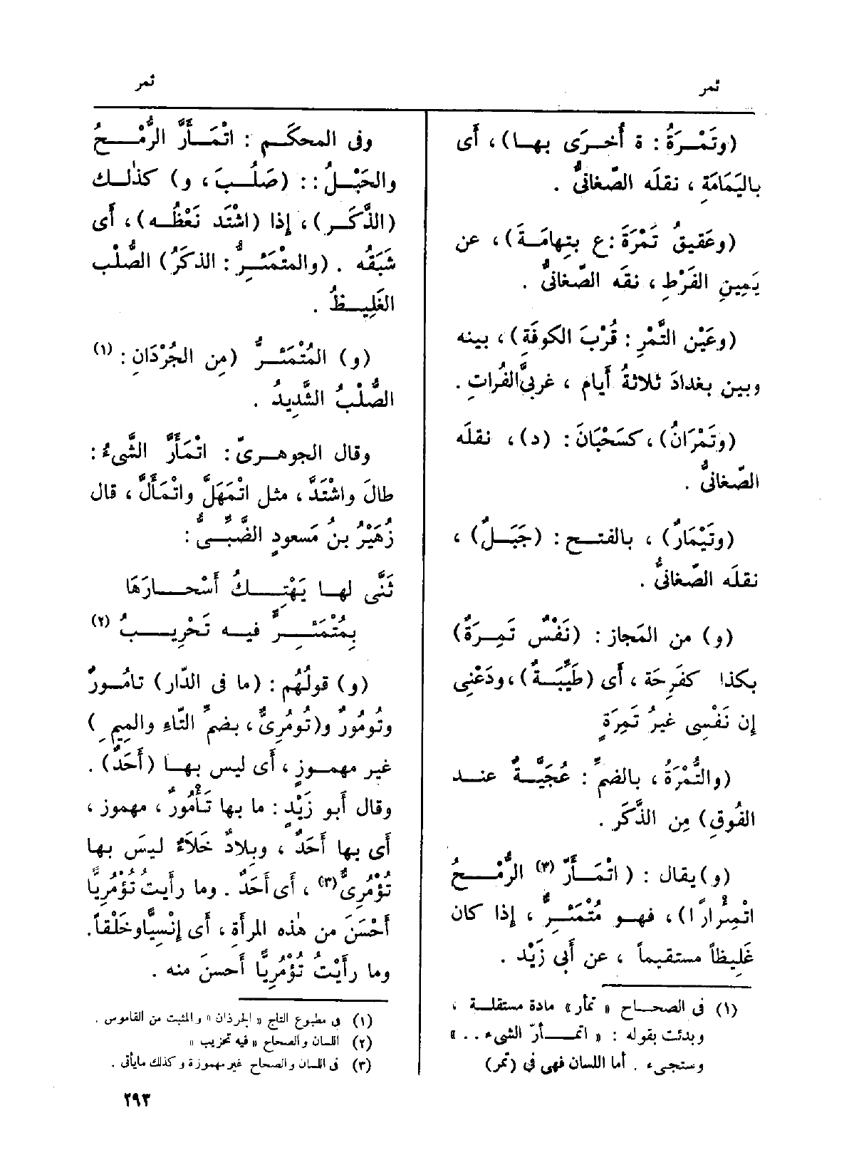 وَقَالَ الجوهريُّ: اتْمَأَرَّ الشَّيءُ: طالَ واشْتَدَّ، مثل اتْمَهَلَّ واتْمَأَلَّ، قَالَ زُهَيْرُ بنُ مَسعودٍ الضَّبِّيُّ: