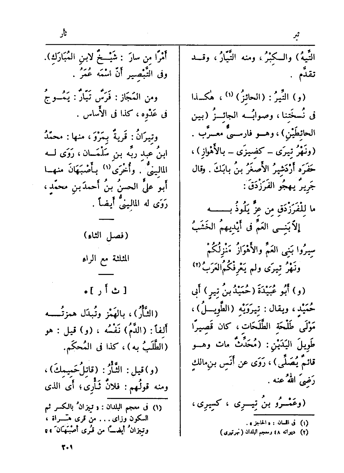 (وعَمْرُو بنُ {تِيرِى، كسِيرِي، أَمْراً مِن سارَ: شَيْخٌ لابنِ المُبَارَكِ) . وَفِي التَّبْصِير أَنْ اسْمَه عُمَرُ.