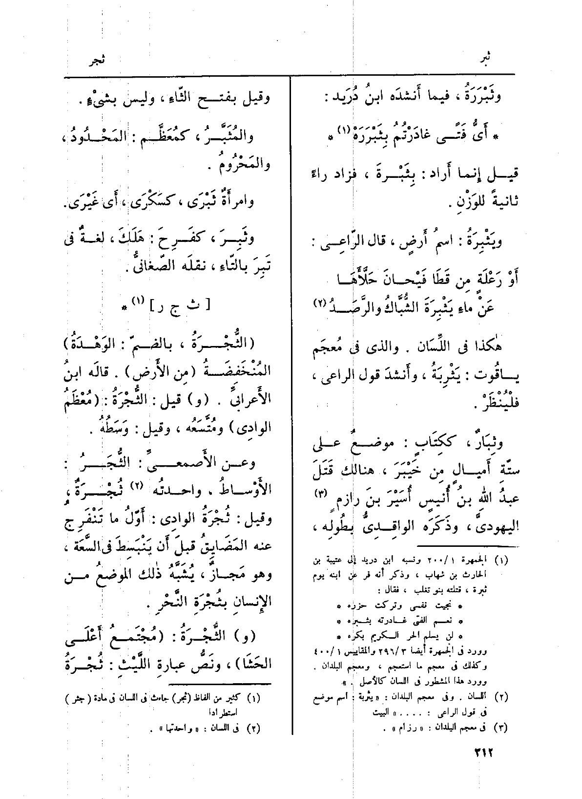قيل إِنما أَراد: بِثَبْرةَ، فَزَاد رَاء ثَانِيَة للوَزْنِ.
