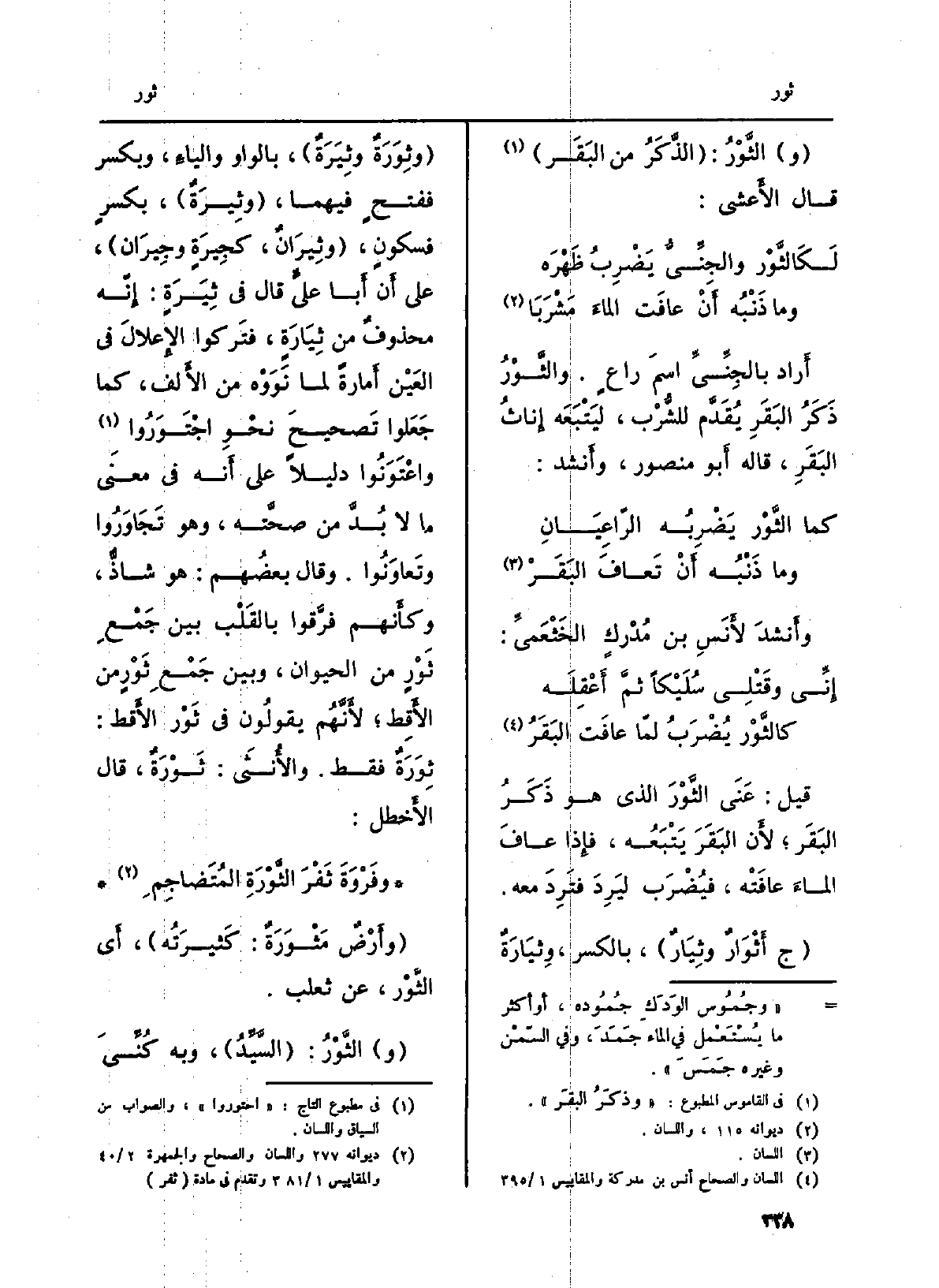 أَراد بالجِنِّيِّ إسمَ راعٍ. {والثَّوْرُ ذَكَرُ البَقَرِ يُقَدَّم للشَّرْب، ليَتْبَعَه إِناثُ البَقَرِ، قَالَه أَبو مَنْصُور، وأَنشد: