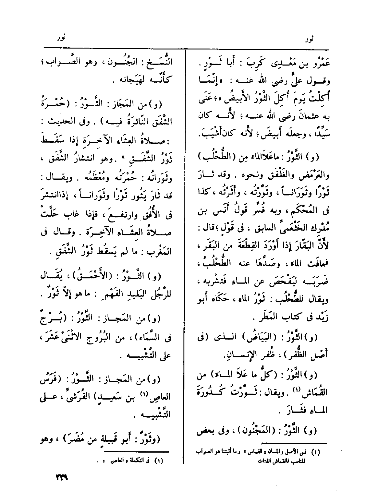 (و) مِنَ المَجَازِ: الثَّوْرُ: (فَرَسُ العاصِ بن سَعيدٍ) القُرَشيِّ، على التَّشْبيه.