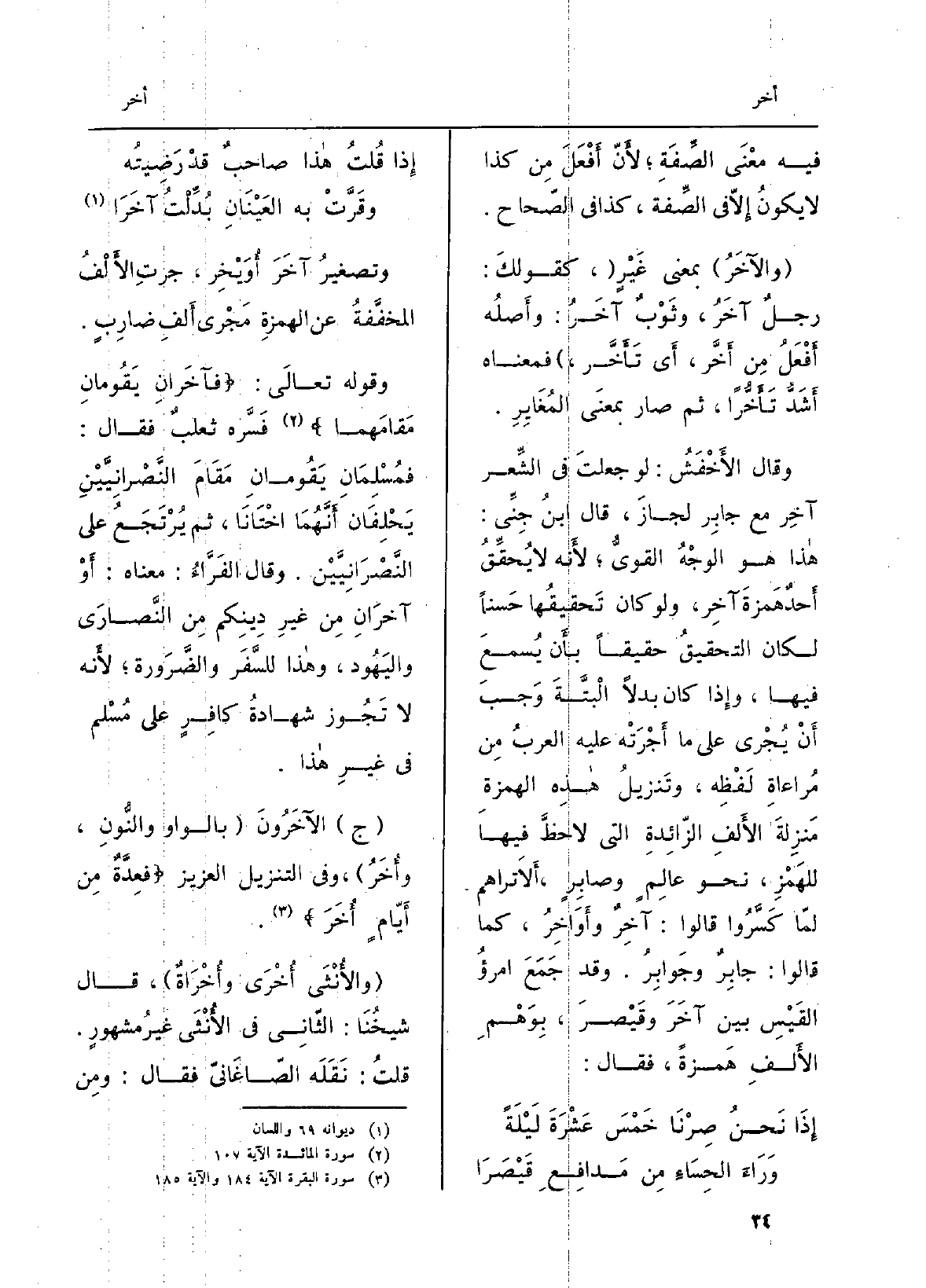 (ج) {الآخَرُونَ (بِالْوَاو والنُّونِ،} وأُخَرُ) ، وَفِي التَّنْزِيل الْعَزِيز: {فَعِدَّةٌ مِّنْ أَيَّامٍ {أُخَرَ} (الْبَقَرَة: 184، 185) .