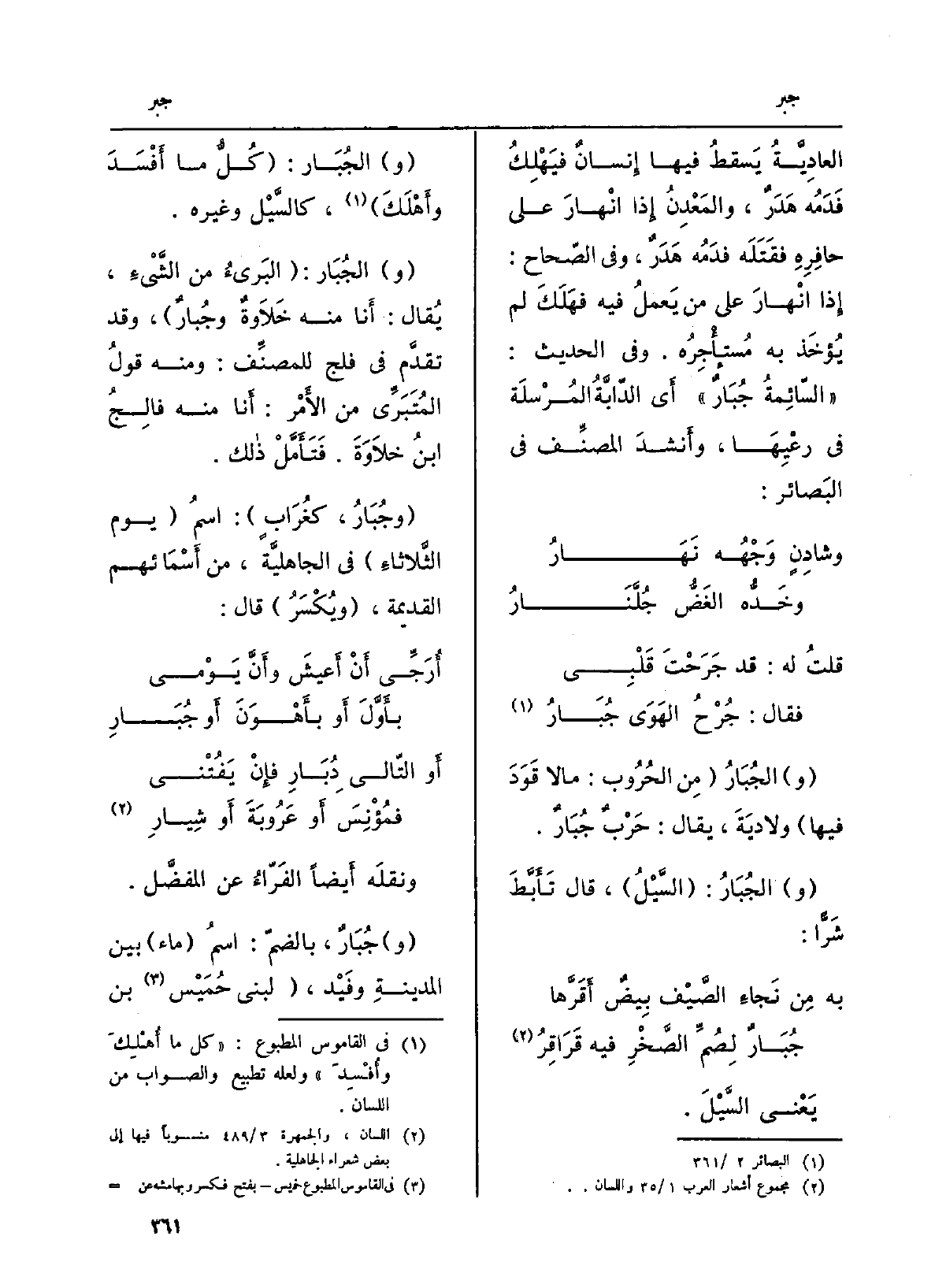 (و) الجُبَارُ: (السَّيْلُ) ، قَالَ تَأَبَّطَ شَرًّا: