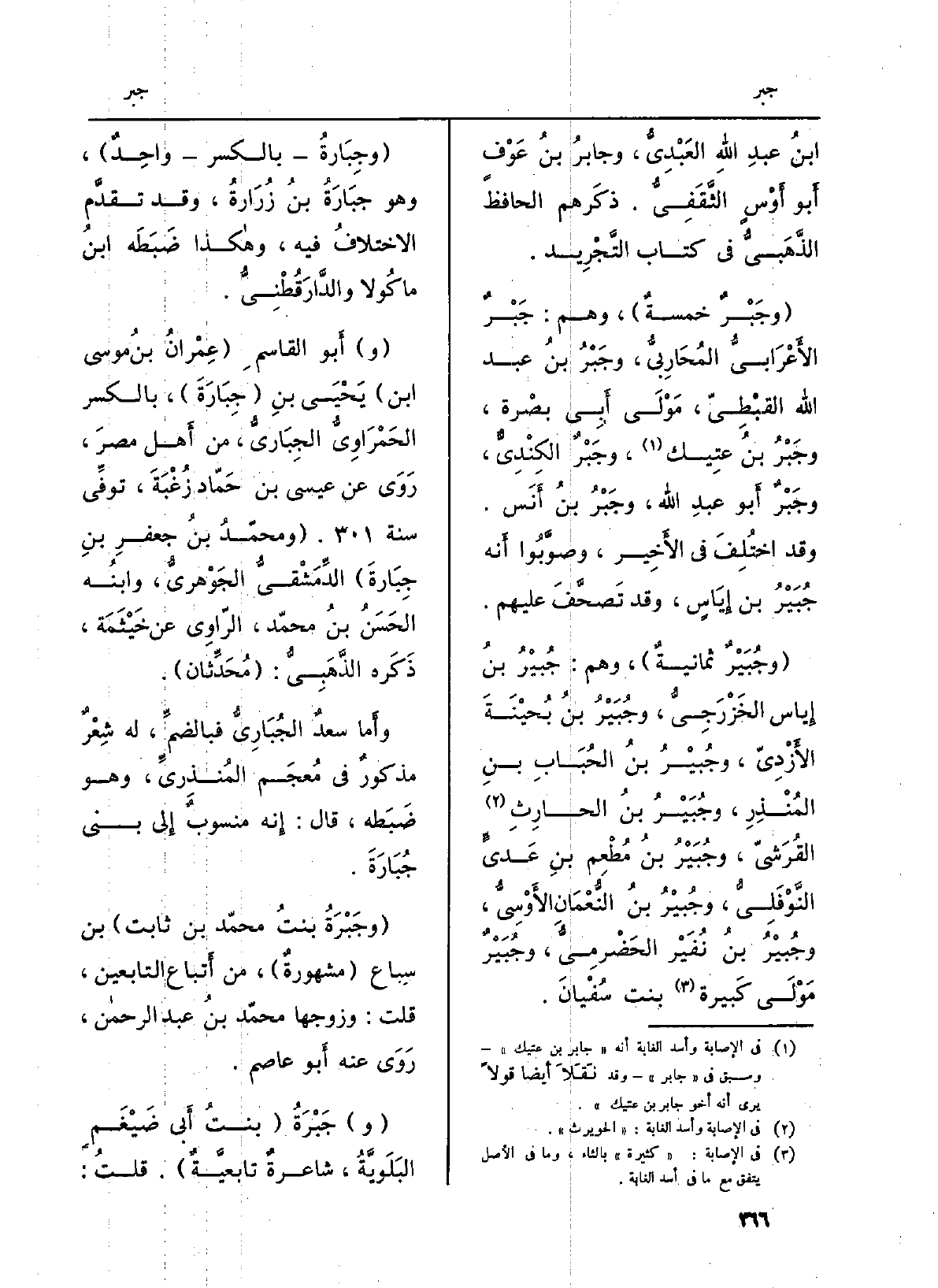 (وجَبْرٌ خمسةٌ) ، وهم: جَبْرٌ الأَعْرَابيُّ المُحاربِيُّ، وجَبْرُ بنُ عبد الله القبْطِيّ، مَوْلَى أَبِي بصْرة، وجَبْرُ بنُ عتِيك، وجَبْرٌ الكِنْدِيٌّ، وجَبْرٌ أَبو عبدِ الله، وجَبْرُ بنُ أَنَس. وَقد اختُلِفَ فِي الأَخِير، وصوَّبُوا أَنه جُبَيْرُ بن إِيَاسٍ، وَقد تَصحَّفَ عَلَيْهِم.