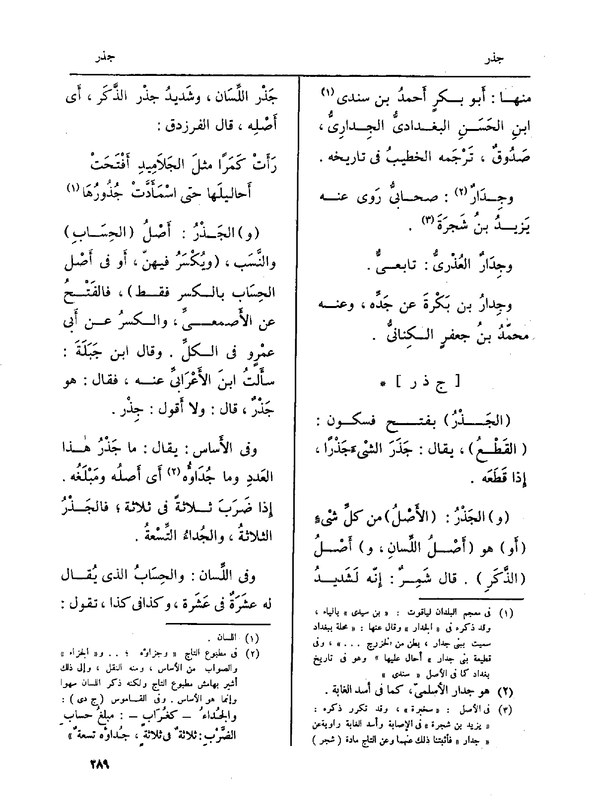 (و) الجَذْرُ: أَصْلُ (الحِسَابِ) والنَّسَب، (ويُكْسَرُ فيهنّ، أَو فِي أَصْل الحِسَاب بِالْكَسْرِ فَقَط) ، بالفَتْحُ عَن الأَصمعيِّ، والكسرُ عَن أَبي عمْرٍ وَفِي الكلِّ. وَقَالَ ابْن جبَلَةَ: سأَلتُ ابنَ الأَعْرَابيِّ عَنهُ، فَقَالَ: هُوَ جَذْرٌ، قَالَ: وَلَا أَقول جِذْر.