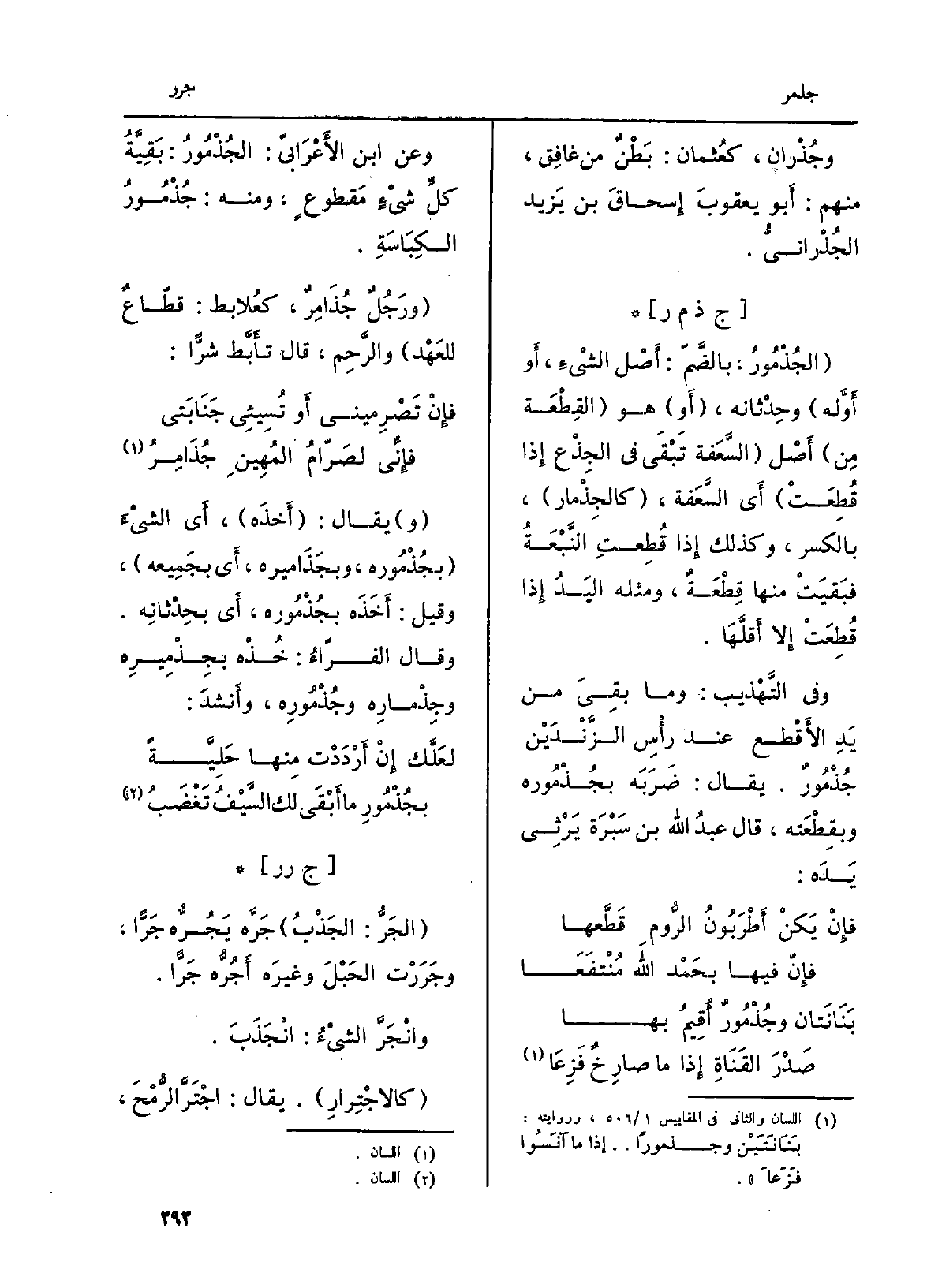 (ورَجُلٌ جُذَامِرٌ، كعُلابط: قطّاعٌ للعَهْد) والرَّحِم، قَالَ تأَبَّط شرًّا: