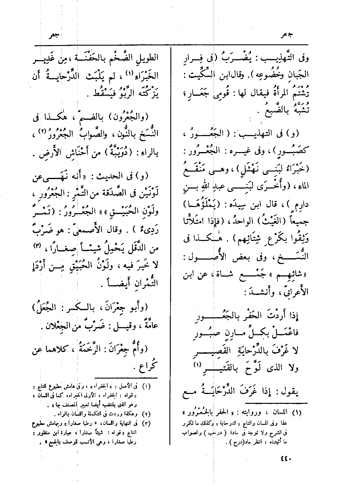 (والجُعْرُون) بالضمّ، هاكذا فِي النُّسَخ بالنُّون، والصَّوابُ الجُعْرُورُ، بالراءِ: (دُوَيْبَّةٌ) من أَحْنَاشِ الأَرضِ.