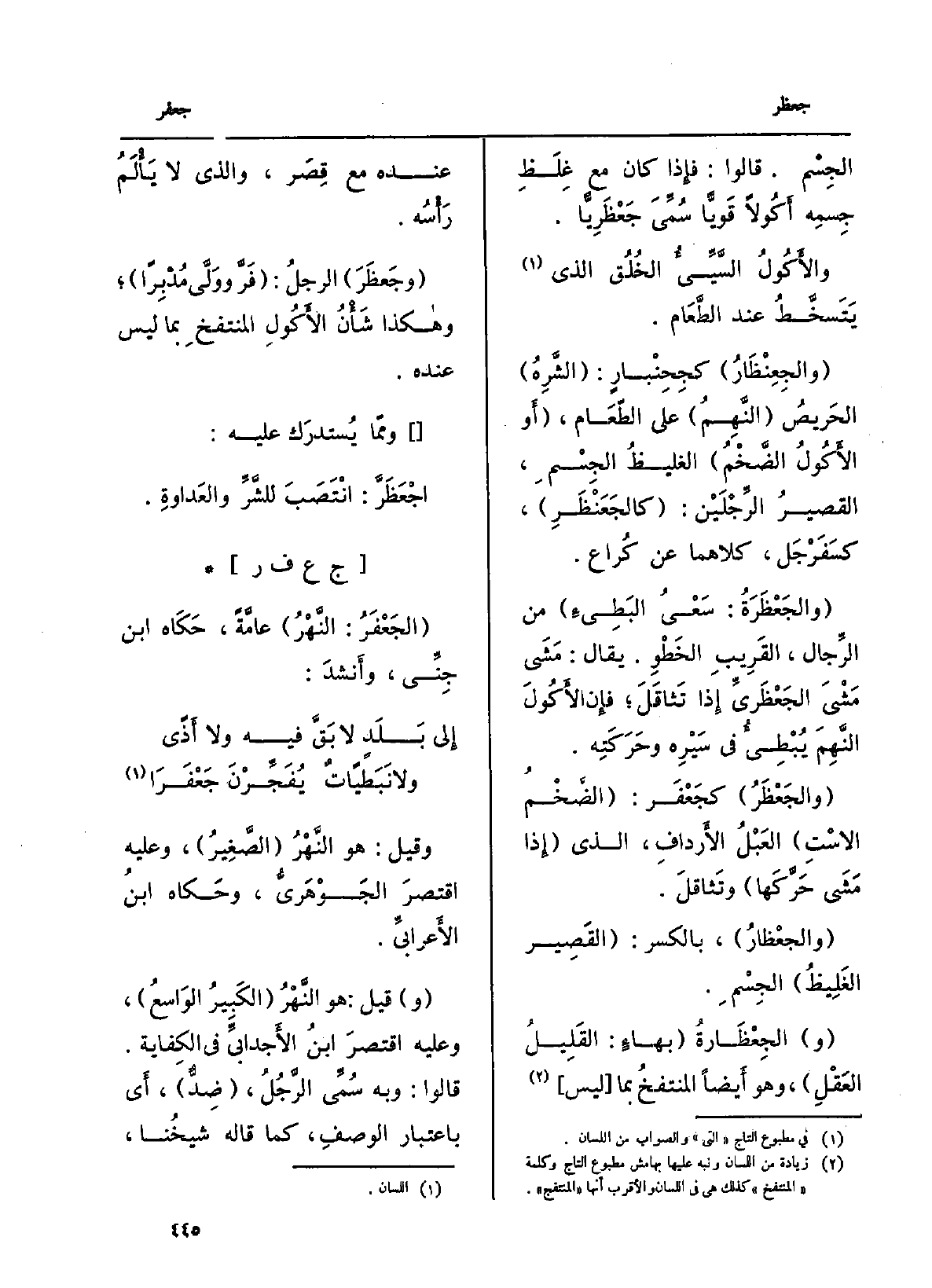 : (الجَعْفَرُ: النَّهْرُ) عامَّةً: حَكَاه ابْن جِنِّي، وأَنشدَ: