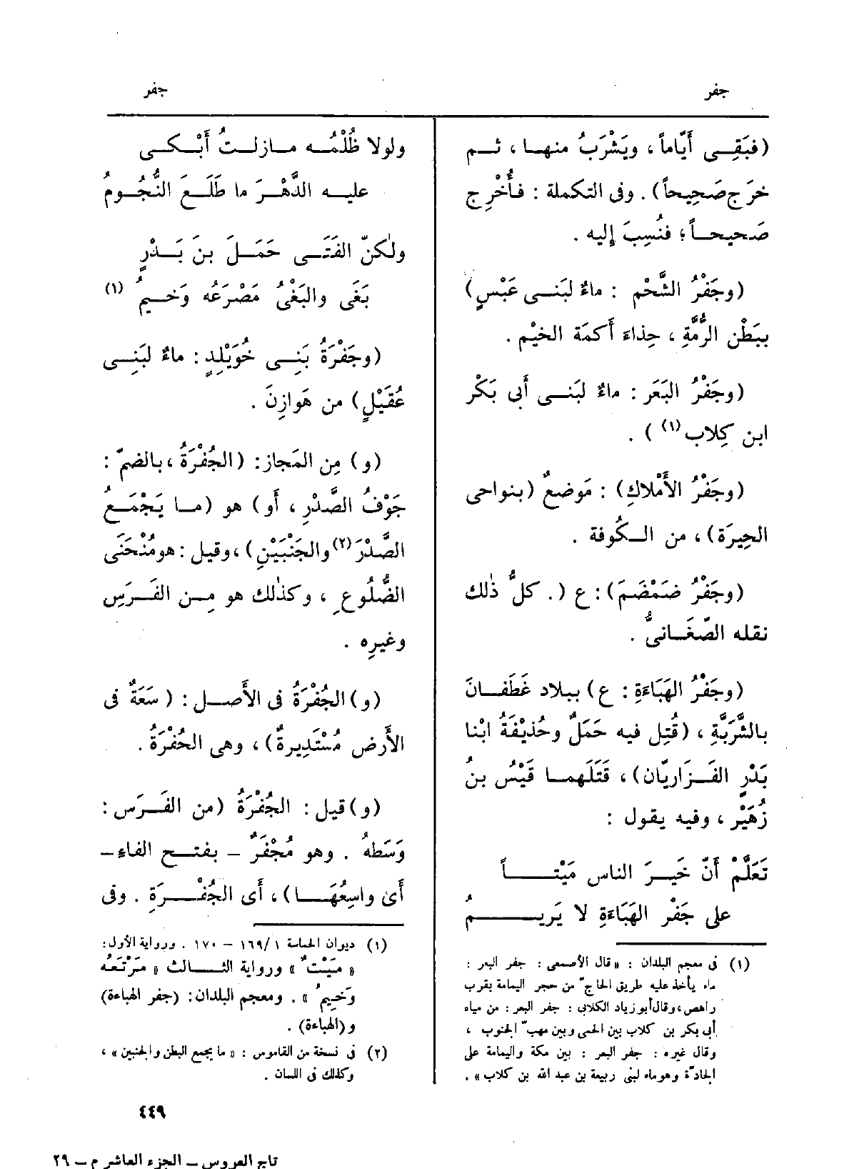 (وجَفْرُ الهَبَاءَةِ: ع) بِبِلَاد غَطَفانَ بالشَّرَبَّةِ، (قُتِل فِيهِ حَمَلٌ وحُذيْفَةُ ابْنا بَدْرٍ الفَزَاريّان) ، قَتَلَهما قَيْسُ بنُ زُهَيْر، وَفِيه يَقُول: