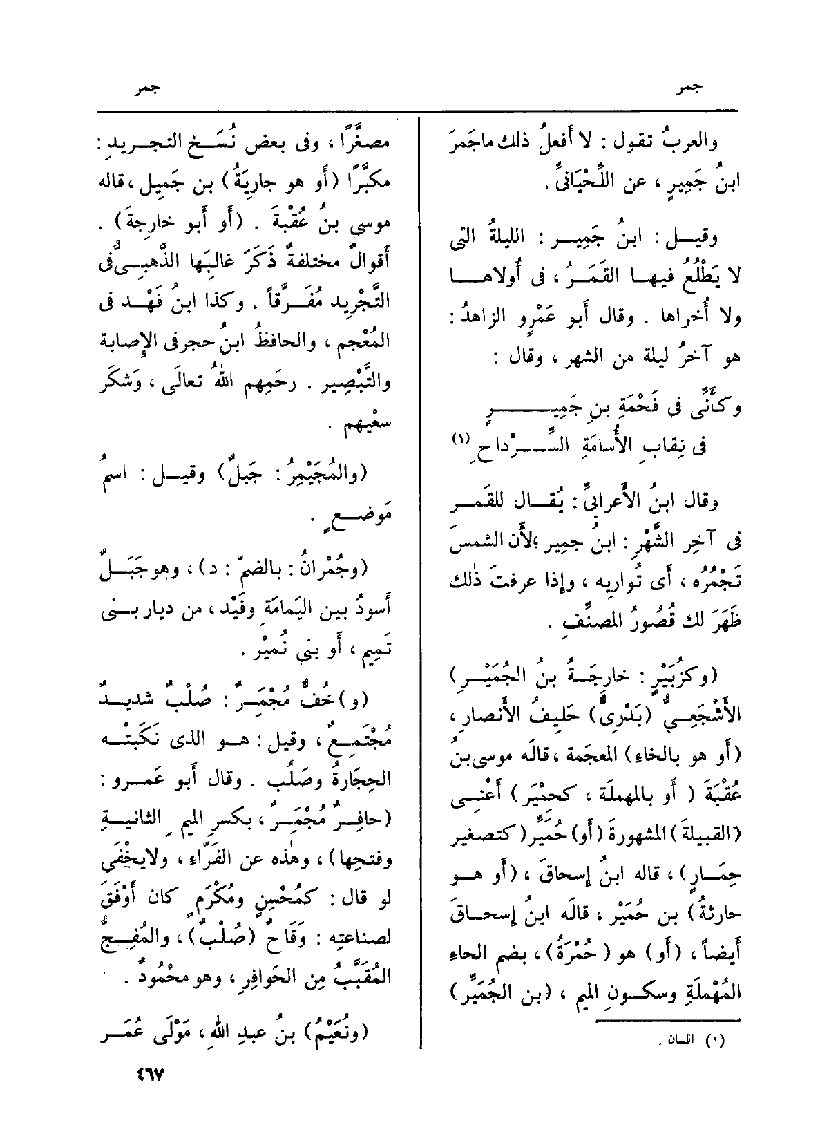 والعربُ تَقول: لَا أَفعلُ ذَلِك مَا جَمرَ ابنُ جَمِيرٍ، عَن اللِّحْيَانيِّ.