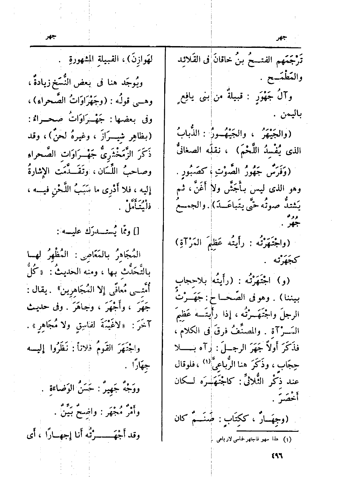 كتاب م كتاب (والجَيْهَرُ، والجَيْهُورُ: الذُّبابُ الَّذِي يُفْسِدُ اللَّحْمَ) ، نقلَه الصغانيُّ.