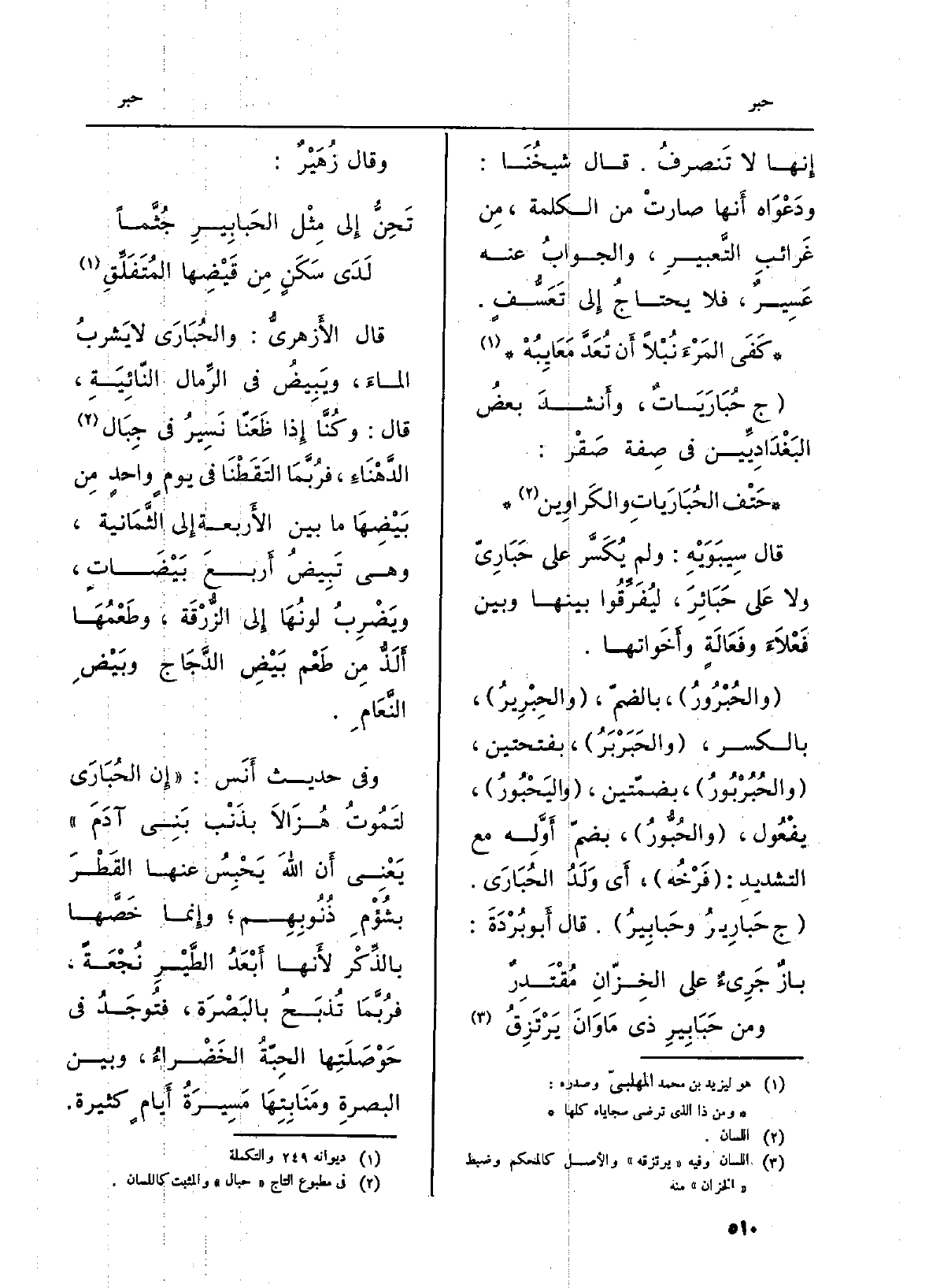 حَتْف الحُبَارَياتِ والكَراوِين قَالَ سِيبَوَيْهِ: لم يُكَسَّر على حَبَارِيّ وَلَا عَلى حَبَائِرَ، ليُفَرِّقُوا بَينهَا وَبَين فَعْلَاءٍ وفَعَالَةٍ وأَخَواتها.