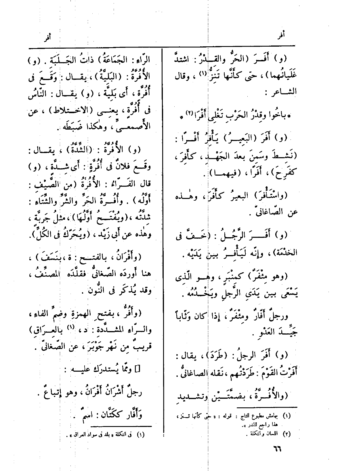(و) {أفَرَ (الحَرُّ والقِدْرُ: اشتدَّ غَلَيانُهما) ، حَتَّى كأَنَّها تَنِزُّ، وَقَالَ الشَّاعِر:
