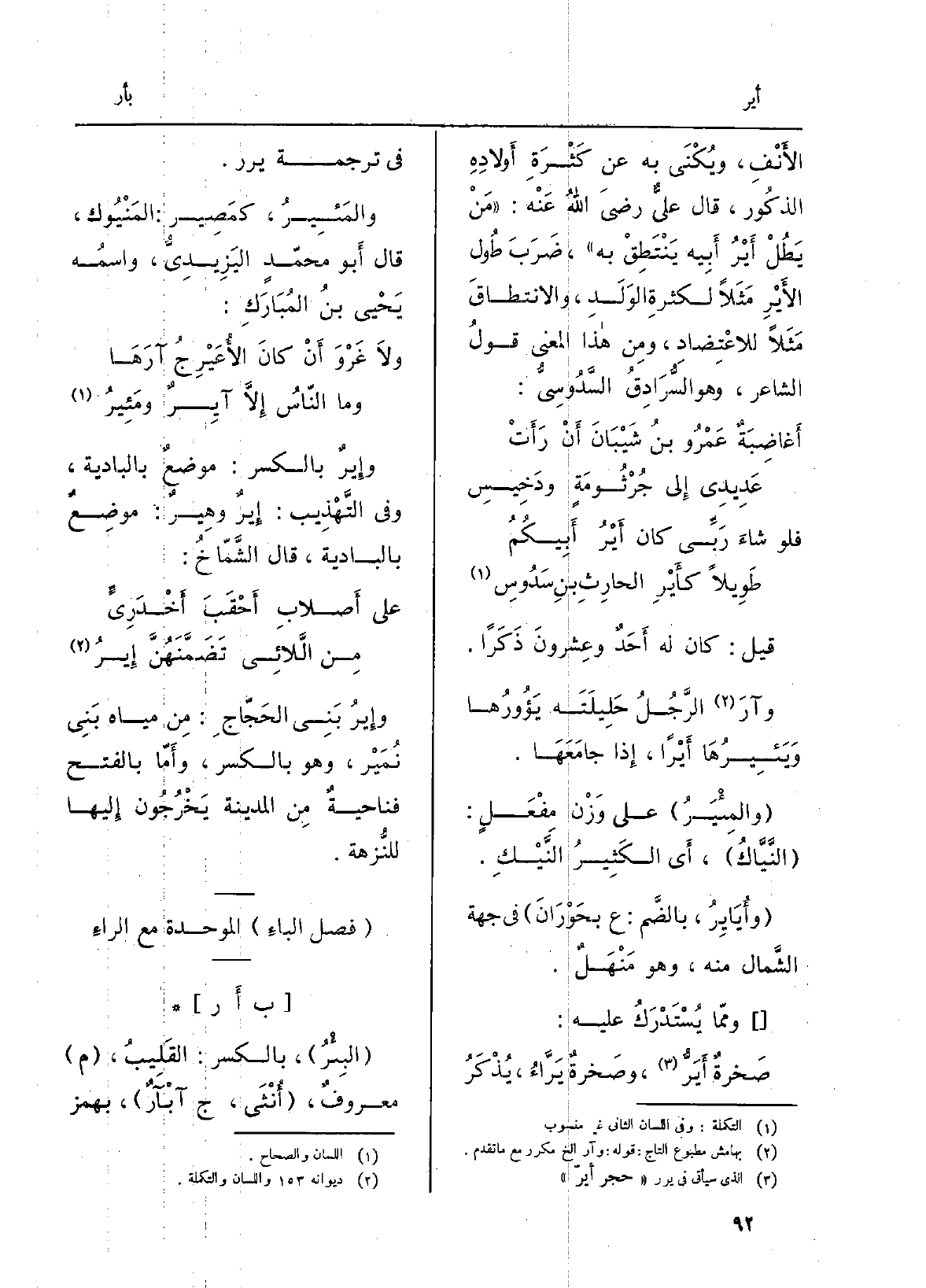 (فصل الْبَاء) الْمُوَحدَة مَعَ الرَّاء)