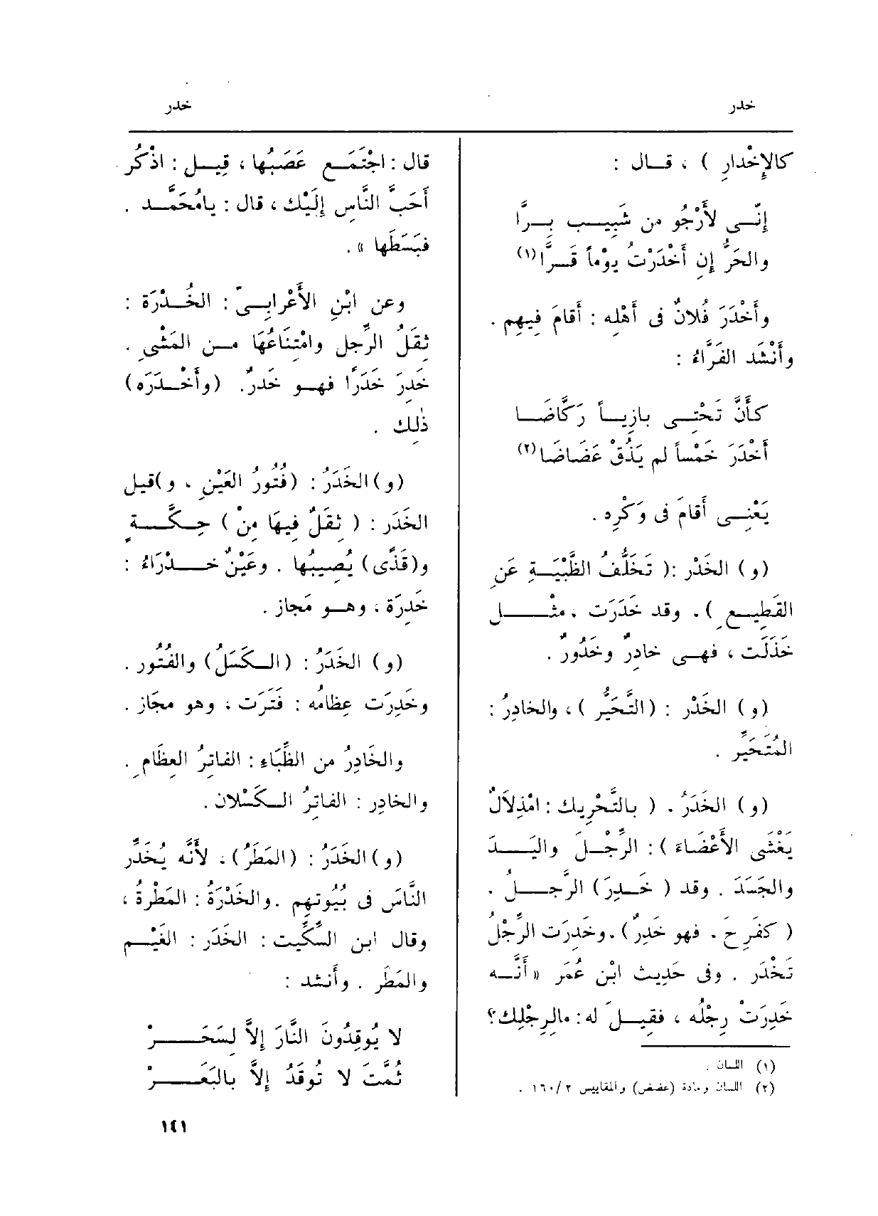 وأَخْدَرَ فُلانٌ فِي أَهْلِه: أَقامَ فِيهِم. وأَنْشَد الفَرَّاءُ:
