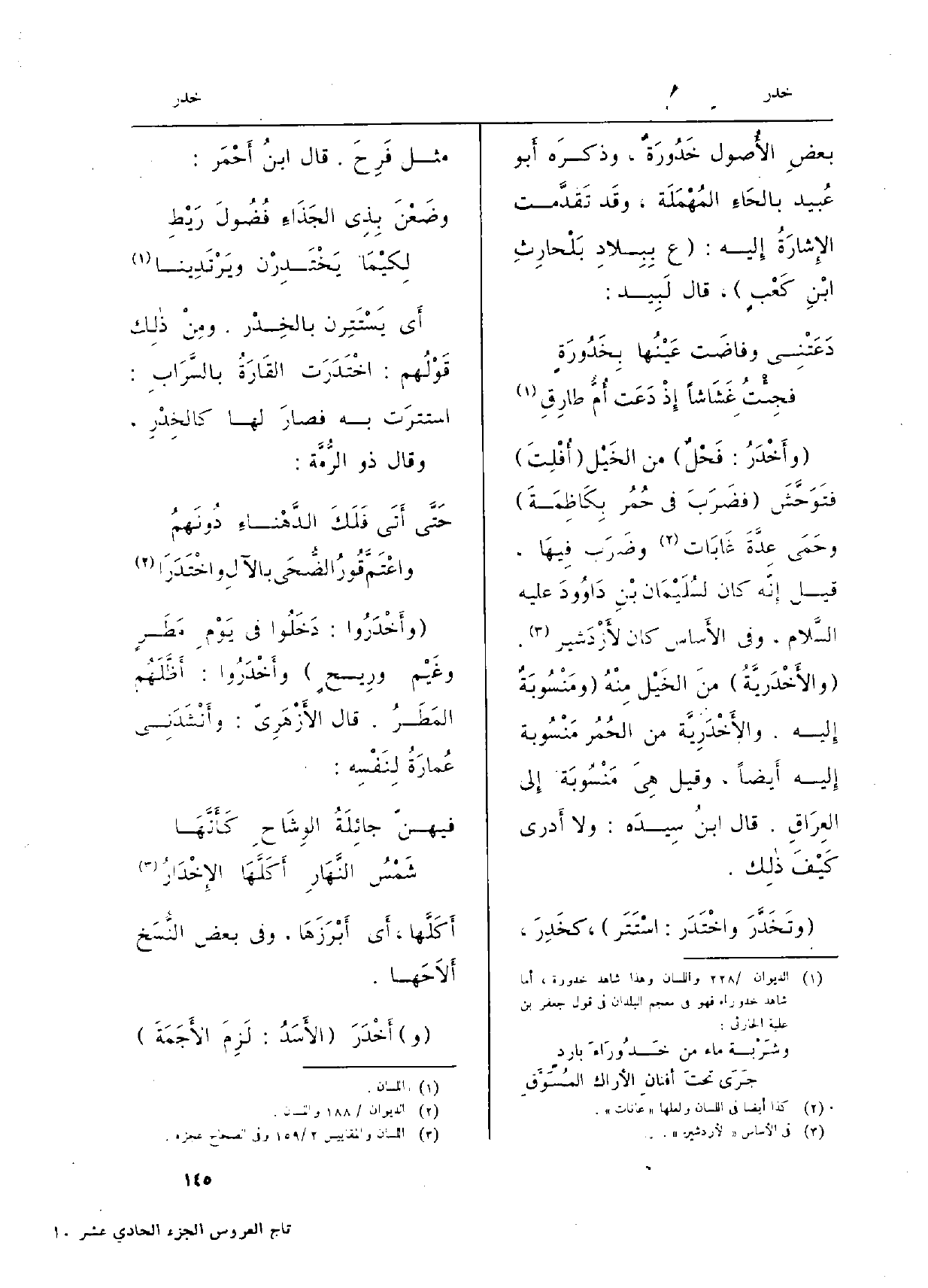 بعضِ الأُصول خَدُورَةٌ، وذكرَه أَبو عُبيد بالحَاءِ المُهْمَلَة، وقَد تَقدَّمت الإِشَارَةُ إِليه: (ع بِبِلادِ بَلْحارِثِ ابْنِ كَعْبٍ) ، قَالَ لَبِيد: