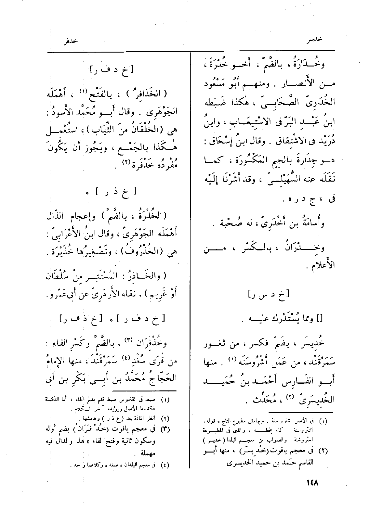 : وخُذْفِرَان، بالضَّمِّ وكَسْرِ الفاءِ: من قُرَى سُغْدِ سَمَرَقَنْدَ، مِنْهَا الإِمامُ الحَجّاجُ مُحَمَّدُ بن أَبِي بَكْرِ بن أَبي