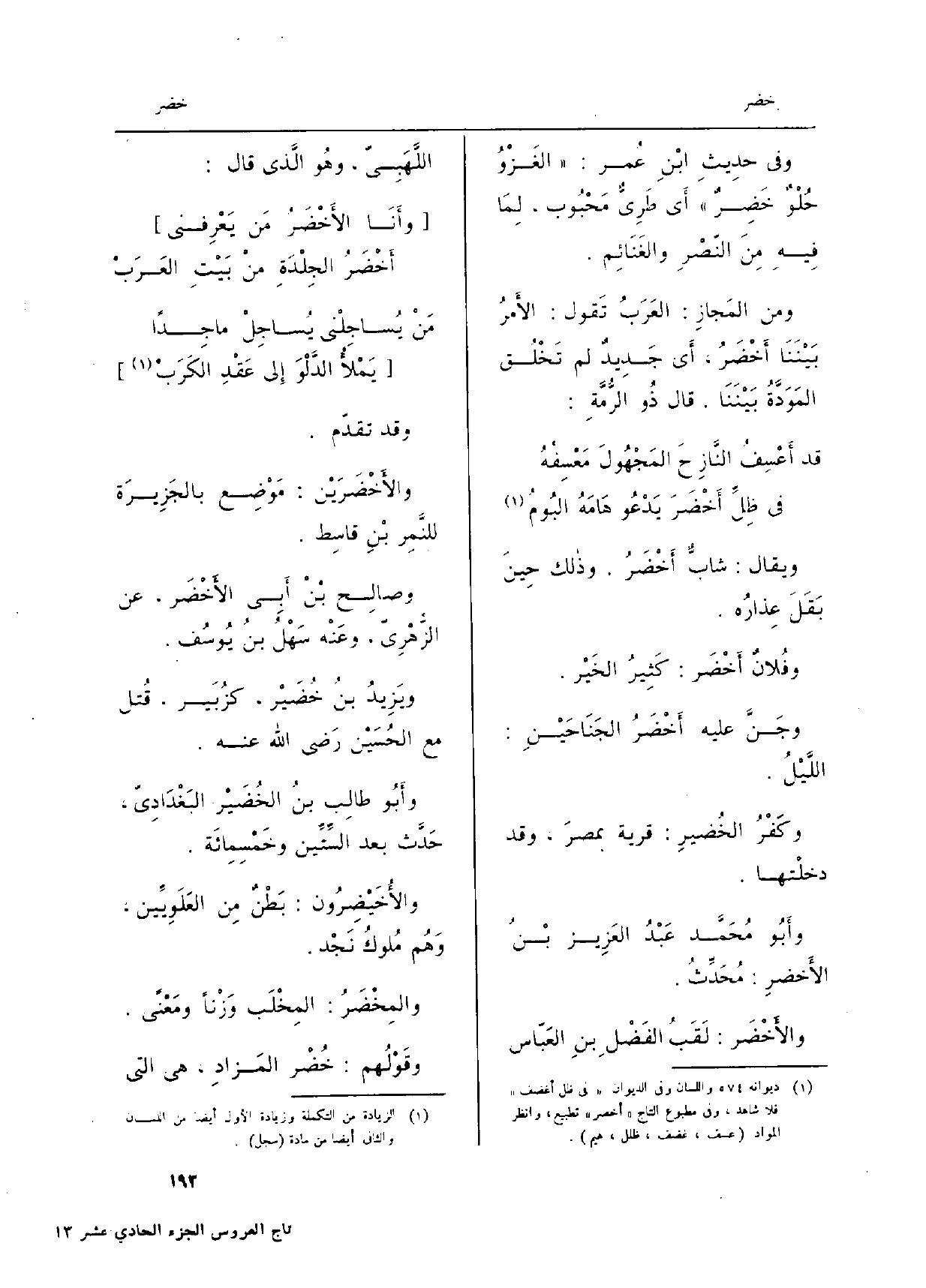 وَفِي حدِيثِ ابْنِ عُمر: (الغَزْوُ حُلْوٌ خَضِرٌ) أَي طَرِيٌّ مَحْبُوب، لِمَا فِيهِ مِنَ النّصْرِ والغَنَائِم.