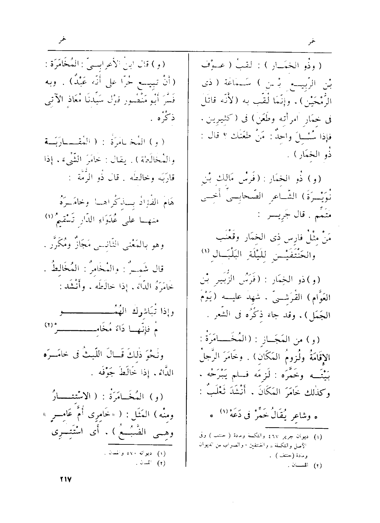 (و) قَالَ ابنُ الأَعرابِيّ: المُخَامَرَة: (أَنْ تَبِيعَ حُرَّا على أَنَّه عَبْدٌ) . وَبِه فَسَّرَ أَبُو مَنْصُور قَوْلَ سَيِّدِنَا مُعَاذِ الآتِي ذِكْرُه.