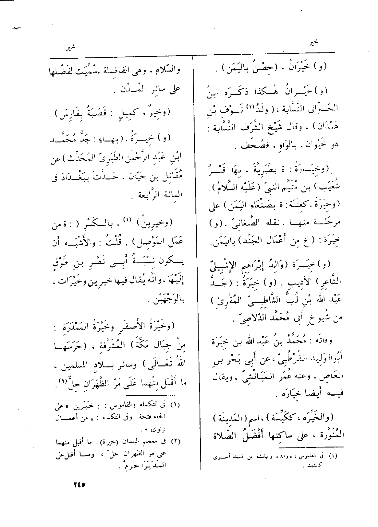 (و) {خِيرَةُ، (بهاءٍ: جَدُّ مُحَمَّد بْنِ عَبْدِ الرَّحْمان الطَّبَرِيّ المُحَدِّث) عَن مُقَاتِل بن حَيّان، حَدَّثَ ببَغْدَادَ فِي المِائة الرَّابعة.