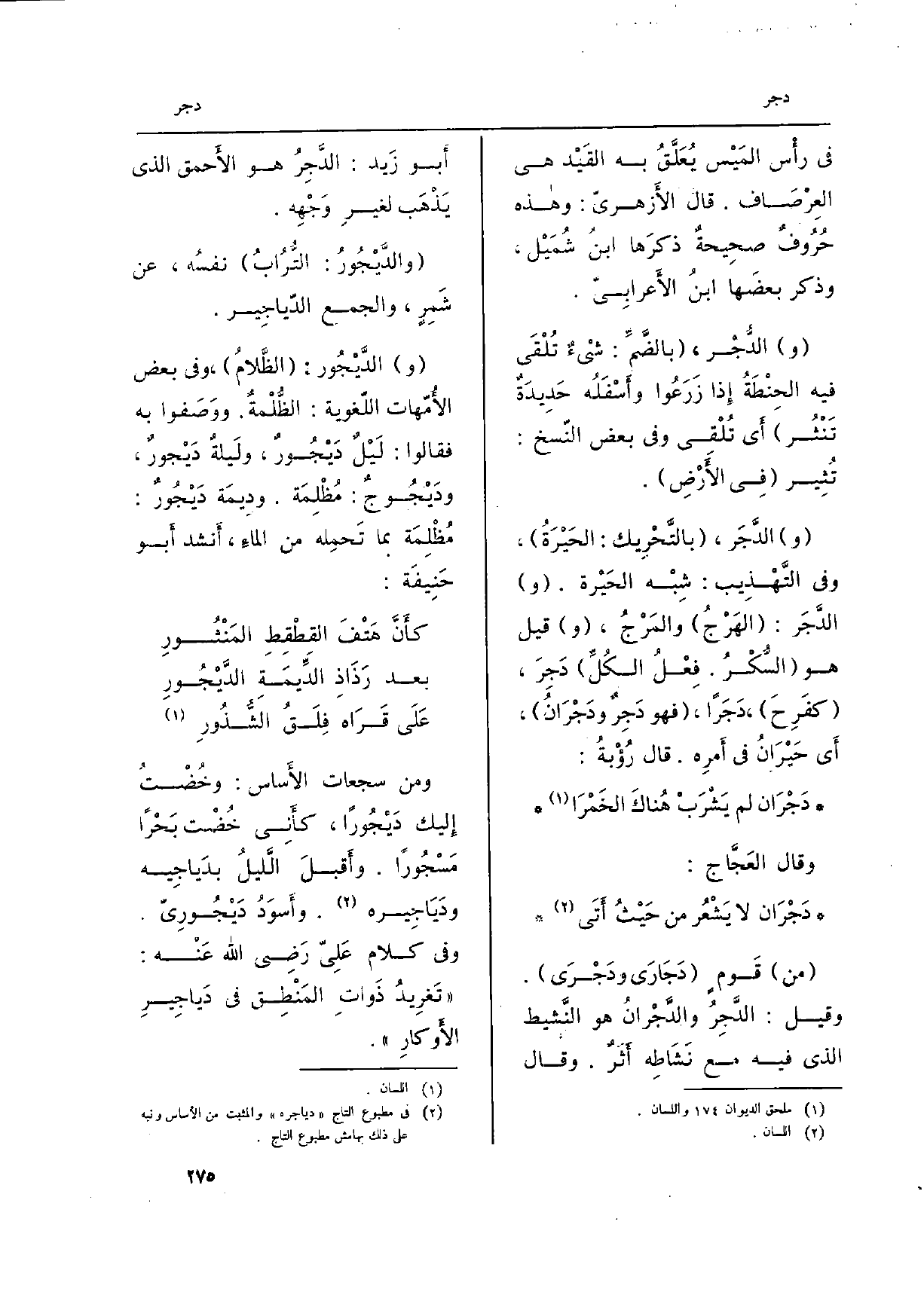 (والدَّيْجُورُ: التُّرُابُ) نفسُه، عَن شَمِرٍ، وَالْجمع الدّياجيِر.