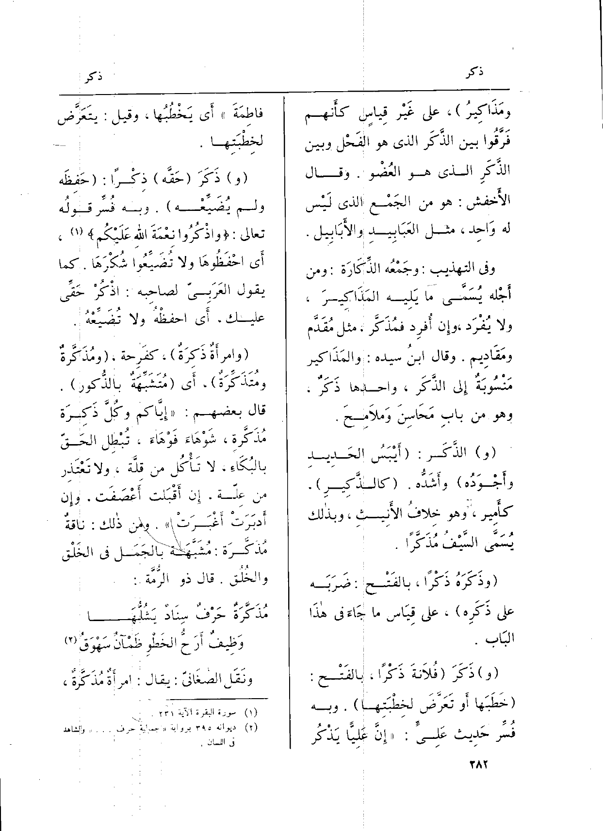 (و) ذَكَرَ (حَقَّه) ذِكْراً: (حَفِظَه وَلم يُضَيِّعْه) . وَبِه فُسِّر قولُه تَعَالَى: {وَاذْكُرُواْ نِعْمَتَ اللَّهِ عَلَيْكُمْ} (الْبَقَرَة: 231) ، أَي احْفَظُوهَا وَلَا تُضَيِّعُوا شُكْرَها. كَمَا يَقُول العَرَبِيّ لصاحِبه: اذْكُرْ حَقِّي عَلَيْك، أَي احفظْهُ وَلَا تُضَيِّعْهُ.