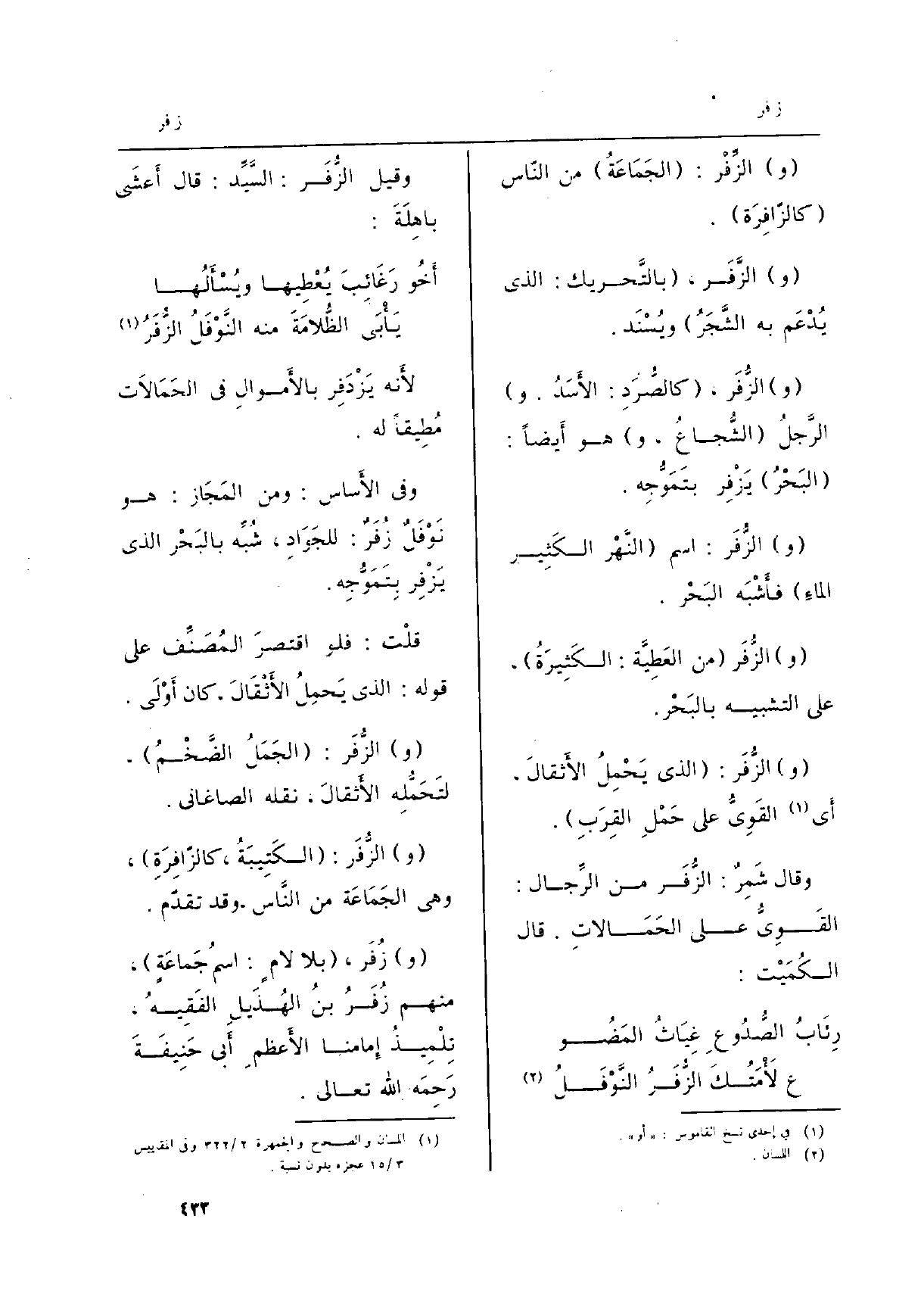 وَقيل الزُّفَر: السَّيِّد: قَالَ أَعشَى باهِلَةَ: