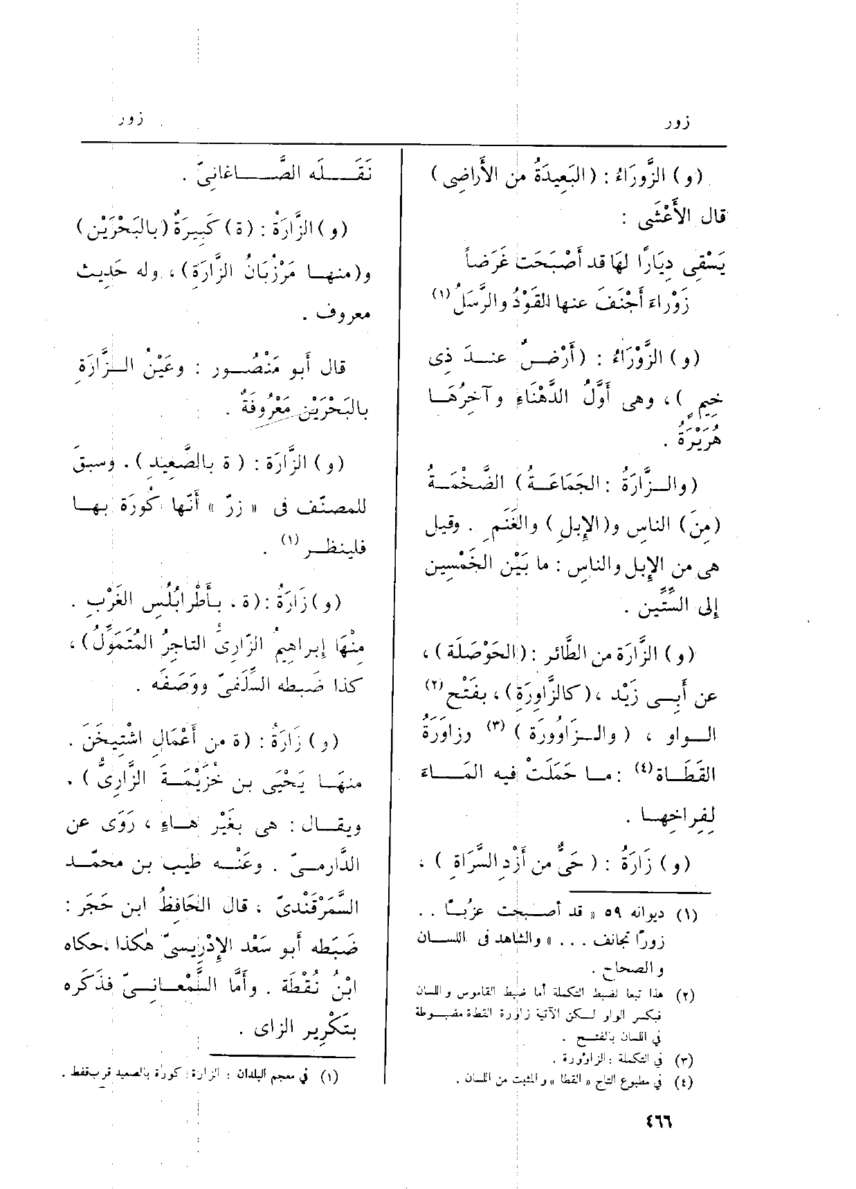قَالَ أَبو مَنْصُور: وعَيْنُ الزَّارَةِ بالبَحْرَيْن مَعْرُوفَةٌ.