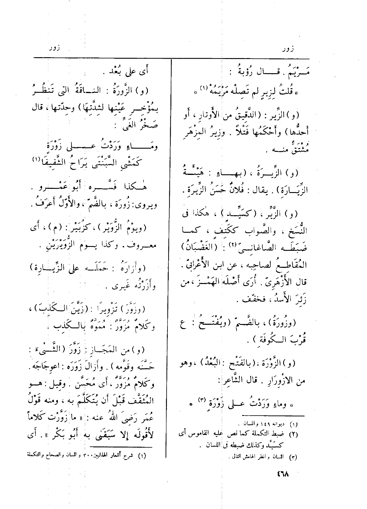 وماءٍ وَرَدْتُ على} زَوْرَةٍ