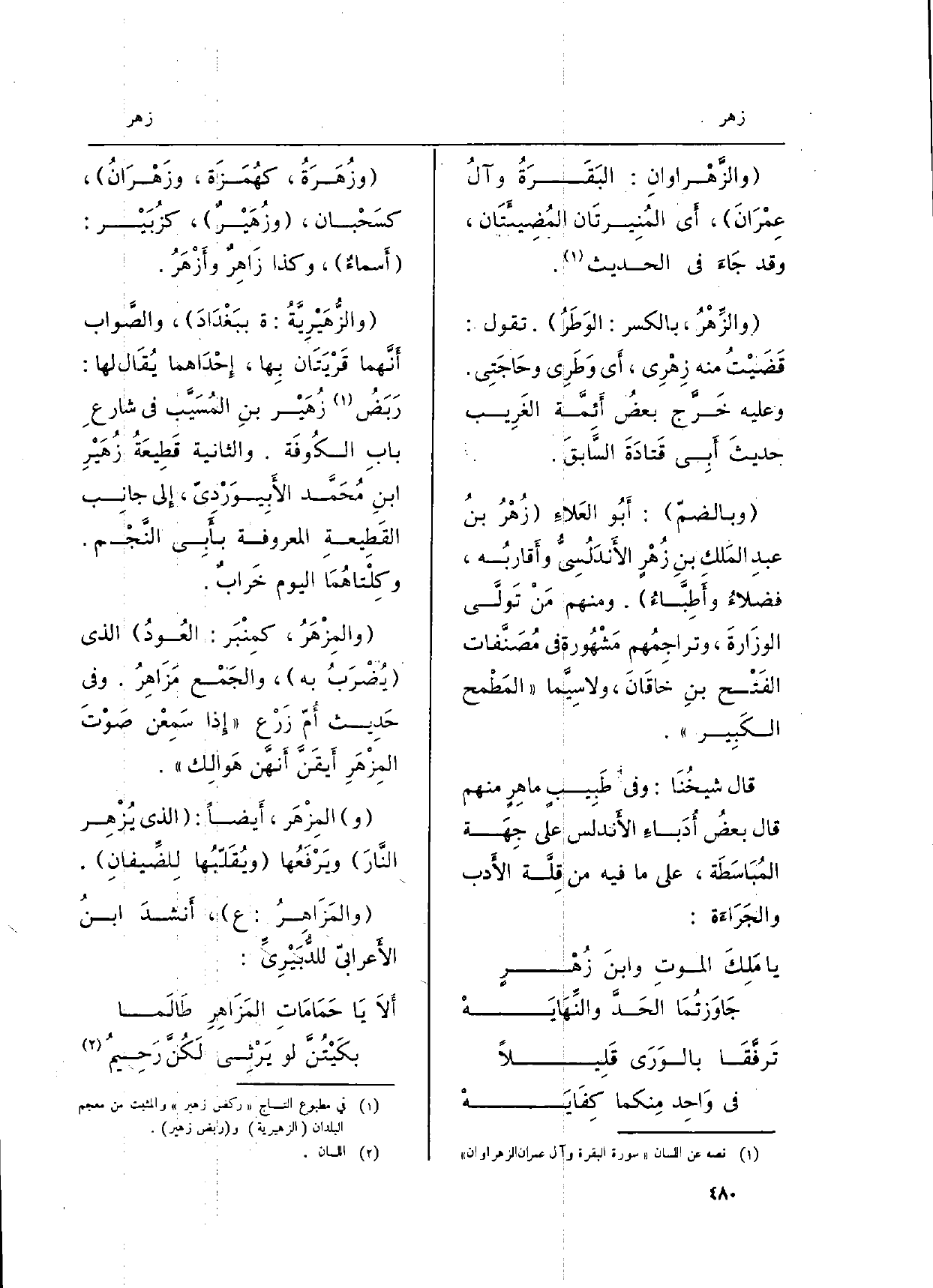 (والمَزَاهِرُ: ع) ، أَنشَ ابنُ الأَعرابيّ للدُّبَيْرِيِّ: