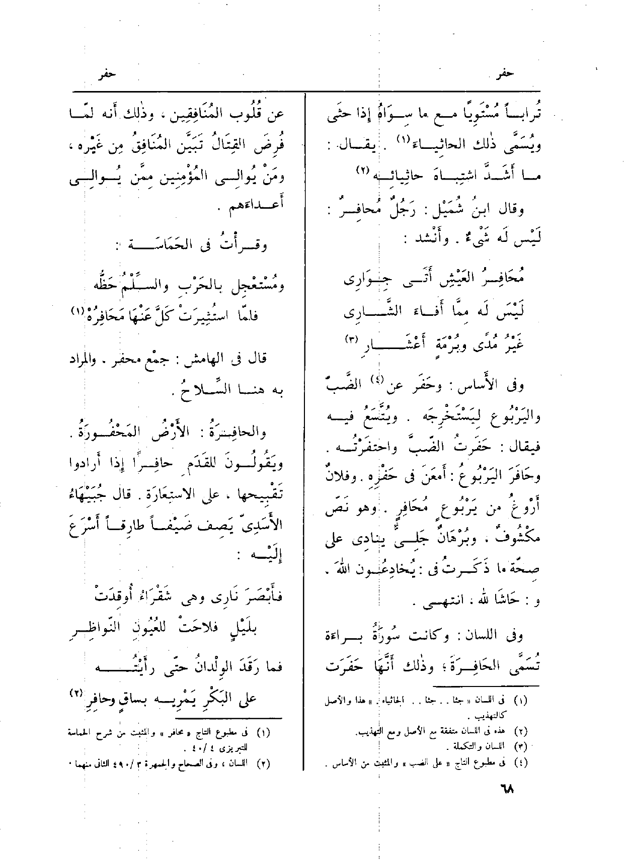 قَالَ فِي الْهَامِش: جمْع محفر، وَالْمرَاد بِهِ هُنَا السِّلاحُ.