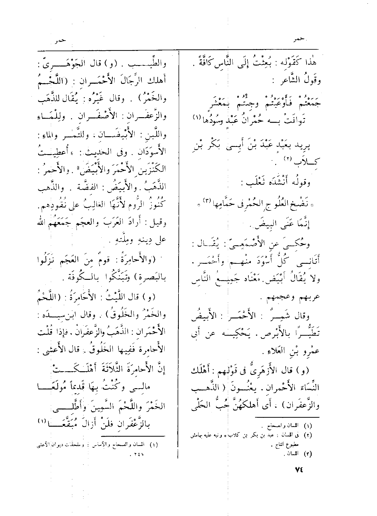 وحُكِيَ عَنِ الأَصْمَعِيّ: يُقَال: أَتَانِي كُلُّ أَسْوَدَ منْهم وأَحْمَر، وَلَا يُقَالُ أَبْيضَ. مَعْنَاه جَمِيعُ النَّاسِ عربهم وعجمهم.