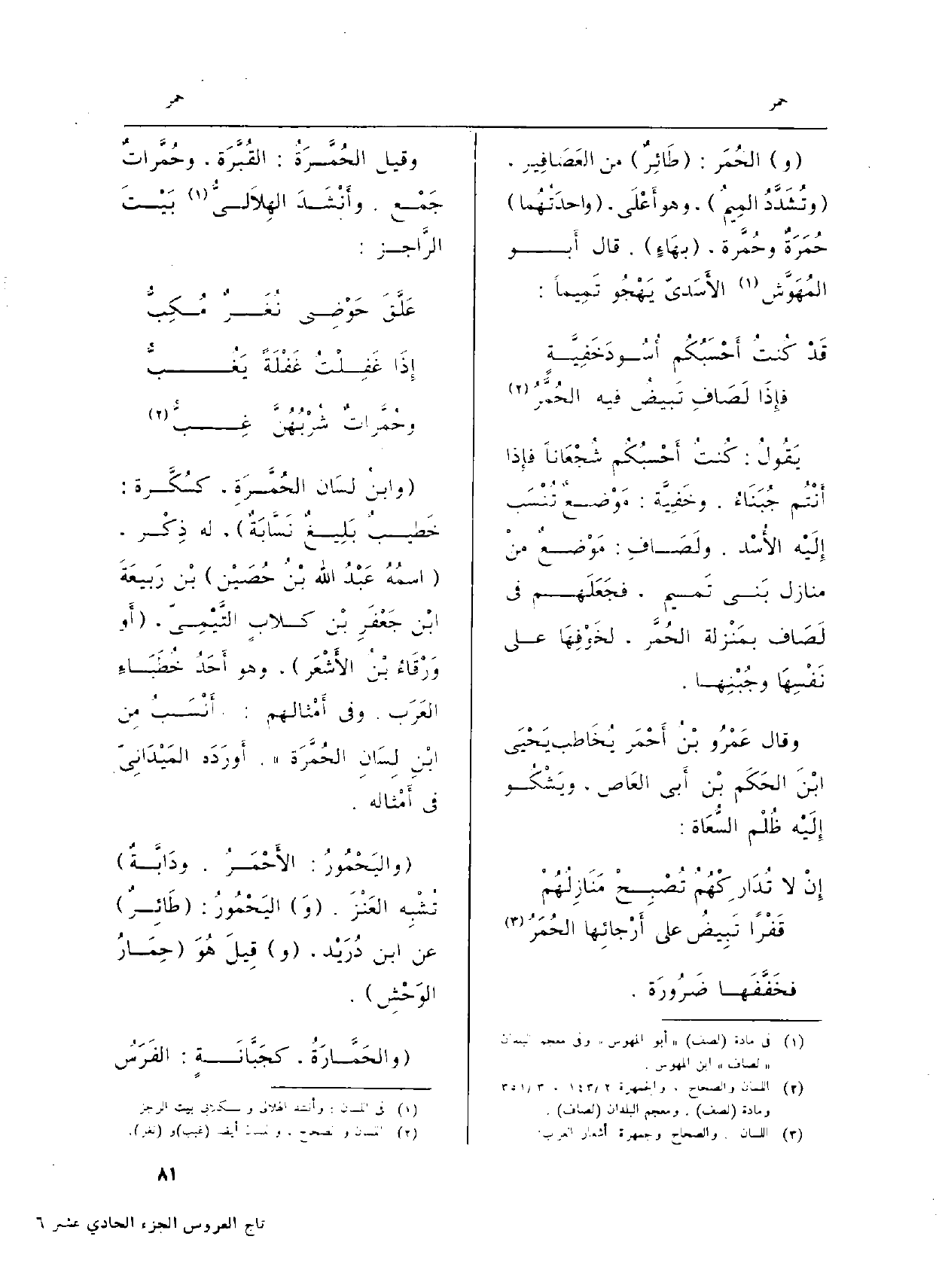 وَقيل الحُمَّرَةُ: القُبَّرَة، وحُمَّراتٌ جَمْع. وأَنْشَدَ الهِلاَلِيُّ بَيْتَ الرَّاجز: